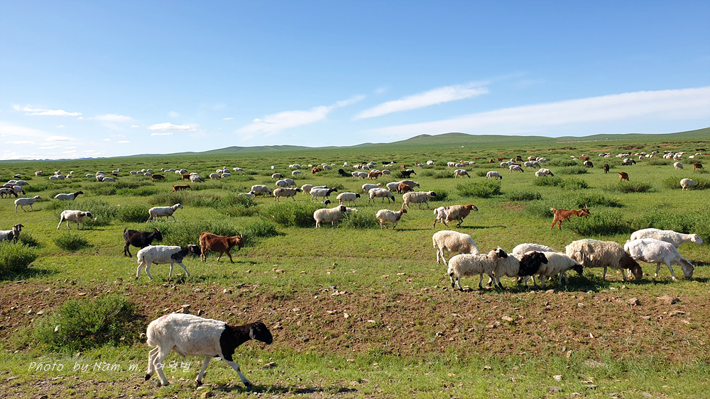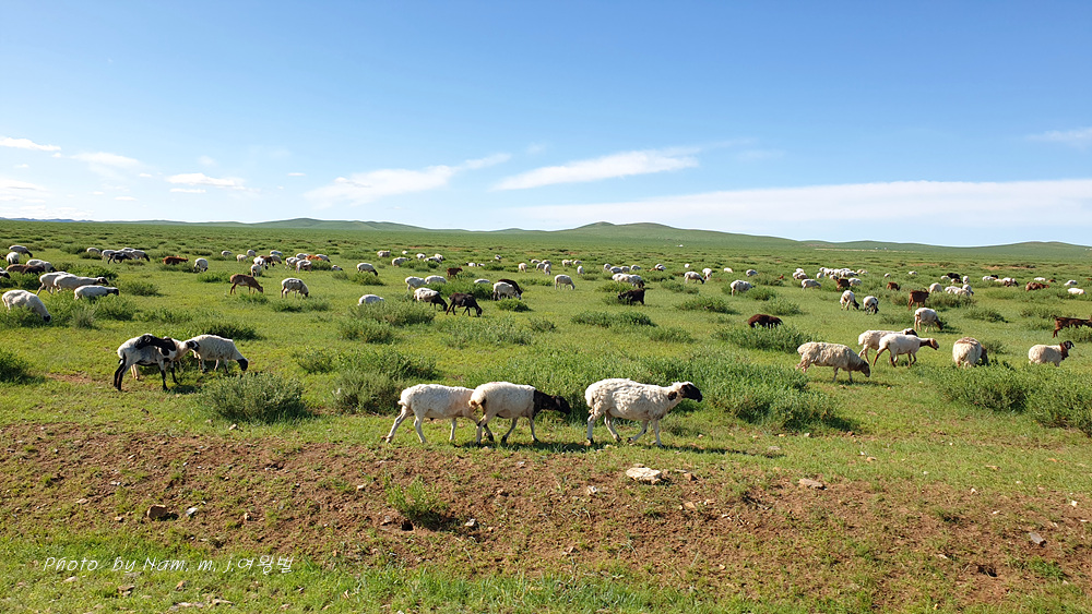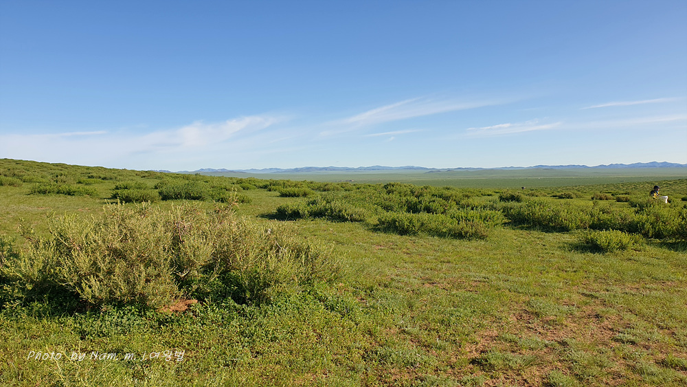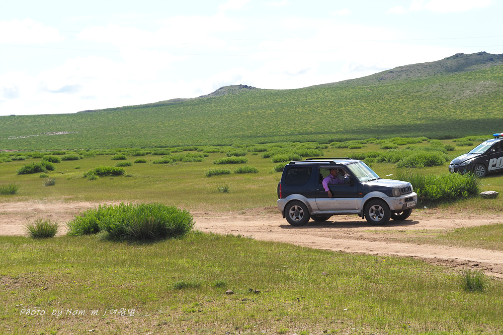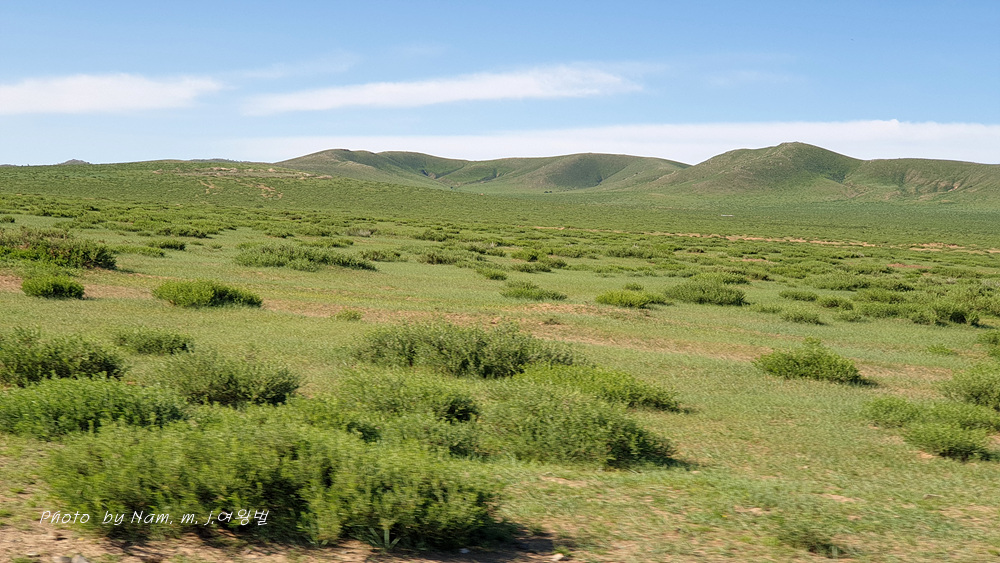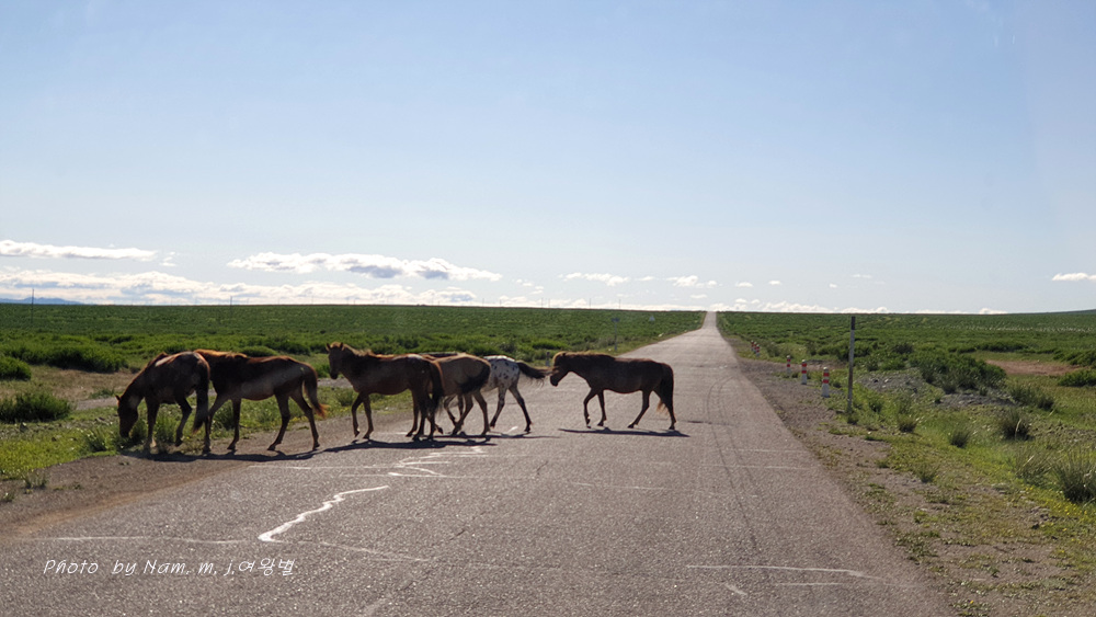 멀리 구릉처럼 둘러싸여 있는 스텝 초지에 시원하게 뚫려있는 고속도로 덕분에