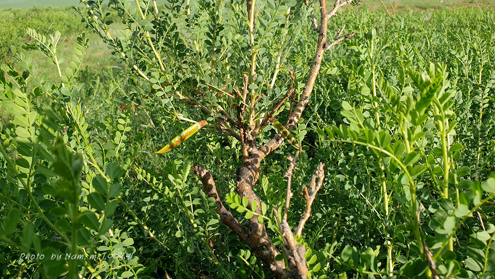 이 곳은 잎이 작은 좀골담초 Caragana microphylla (367p)가 산비탈을 우점하고 있었다.