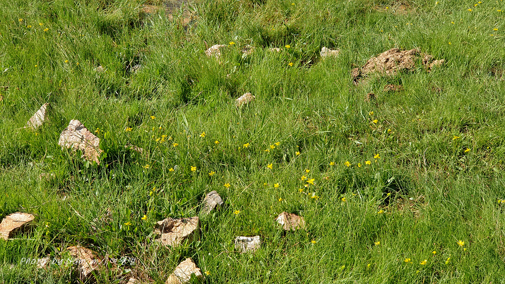 노랗게 꽃을 피운 미나리아재비속 녀석이 길게 줄기를 벋으면서 깔려 있다.