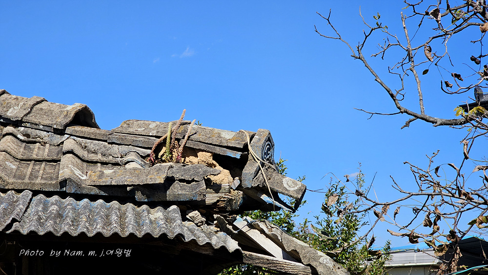 돌담과 폐가 지붕의 바위솔이 풍성하여 가을날 하루 산책하기 딱 좋은 마을이다