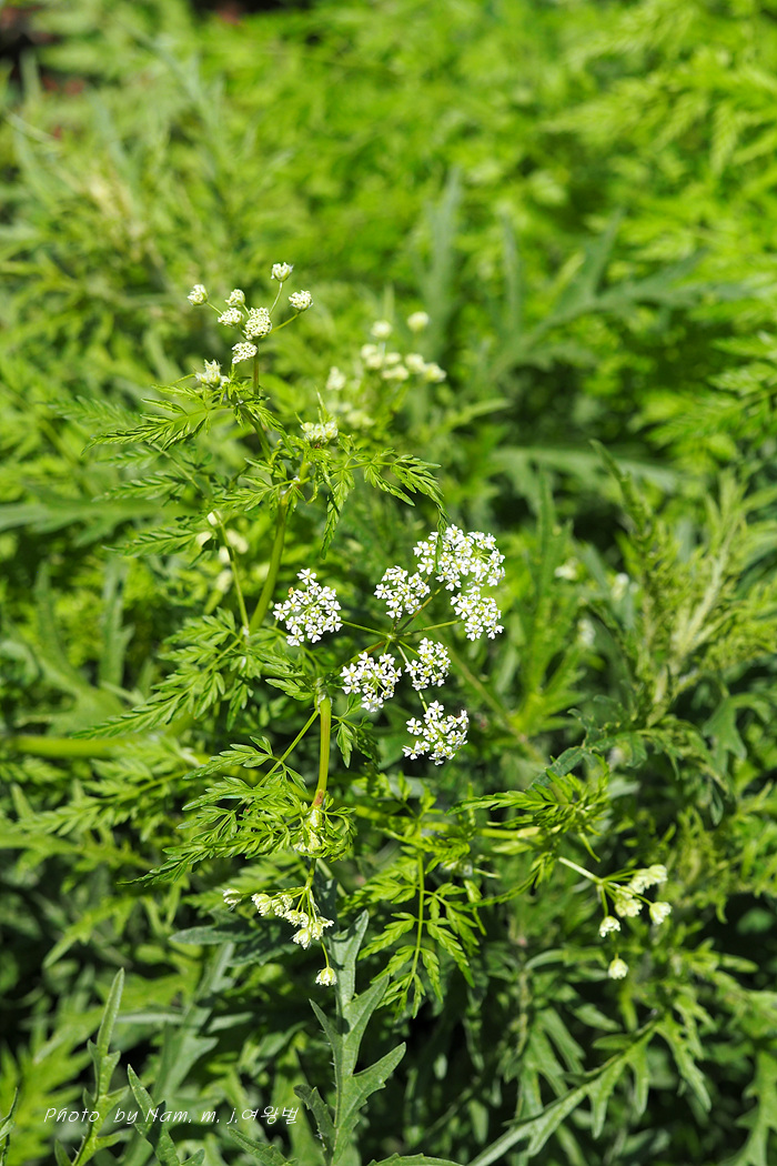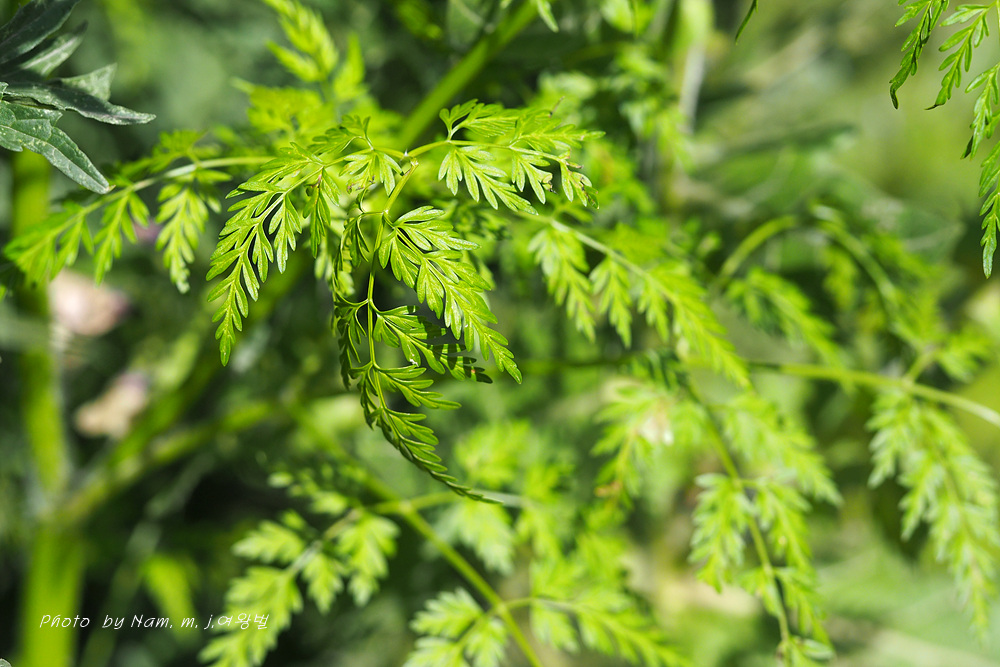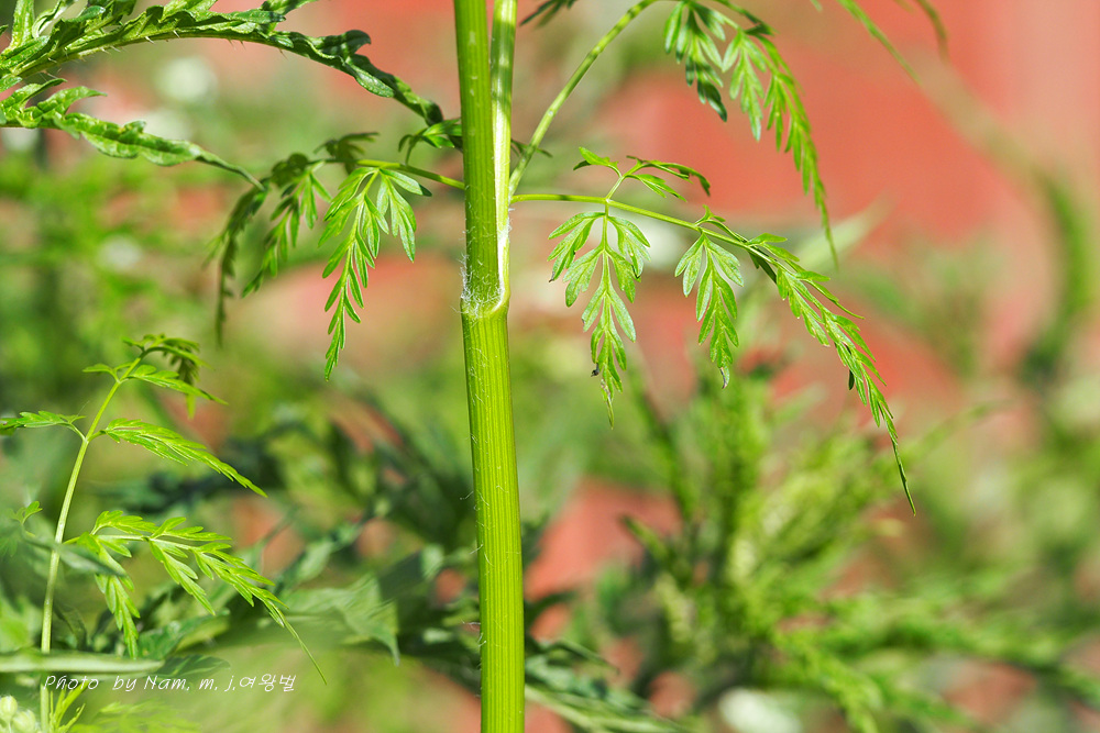 잎은 어긋나기하고 3회 우상으로 잘게 갈라지며 엽병은 편평하고 밑부분 초상이며
