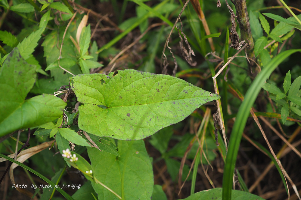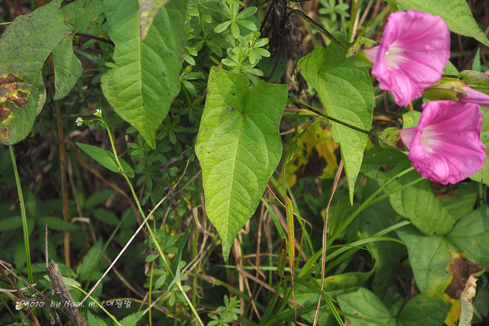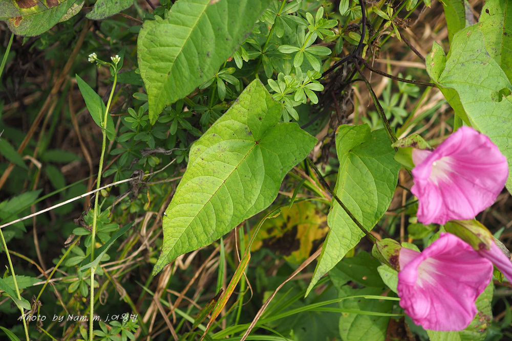 | 잎 너비 | 2-7cm | 옆으로 나온 돌기와 더불어 3-7cm | 3-6cm, 너비가 디른 메꽃에 비하여 넓음 | 3~5cm |