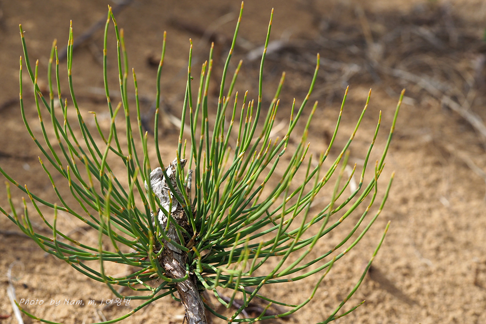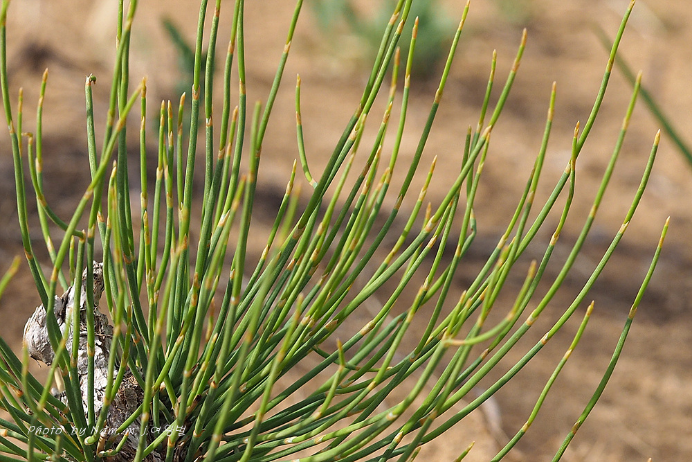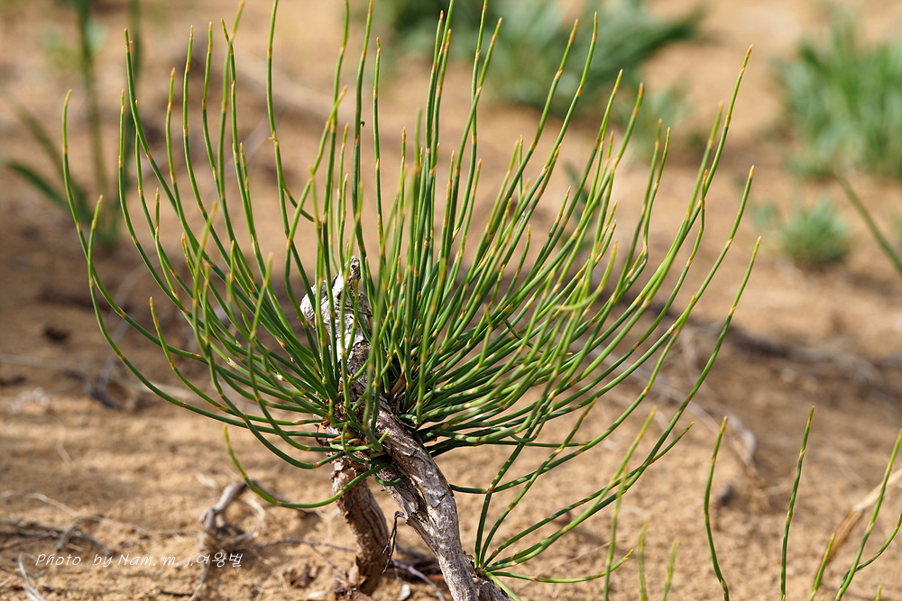 중국 북부와 몽골 등지에 분포하는 상록관목으로 풀도 나무도 아닌 것 같은 속새를 닮은 녀석이다.