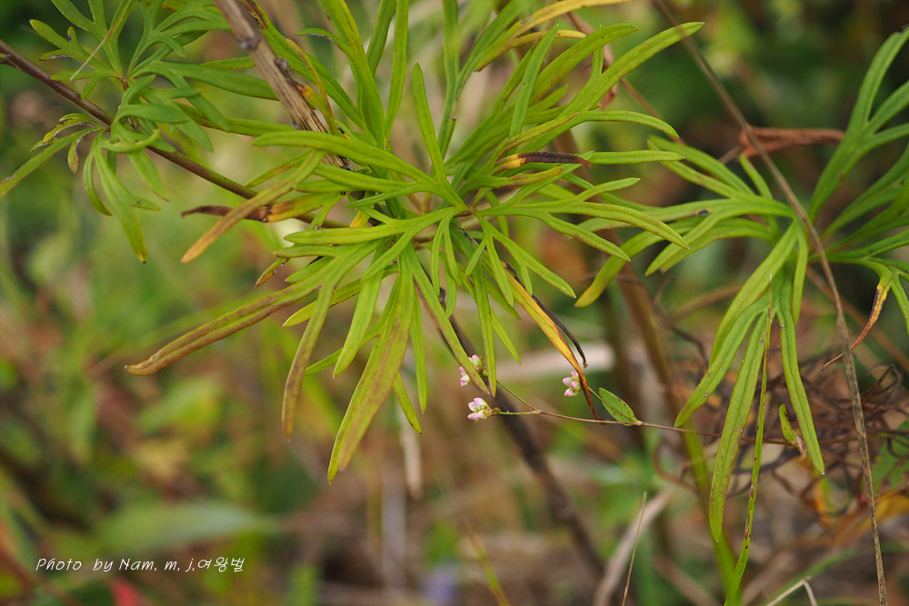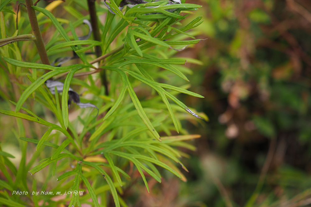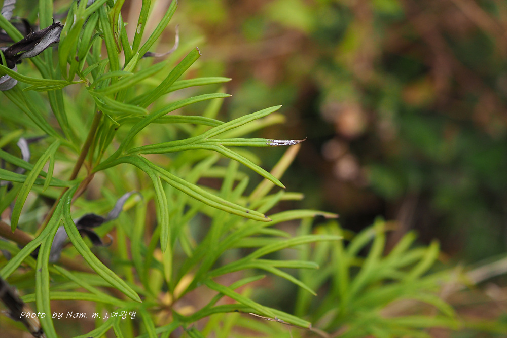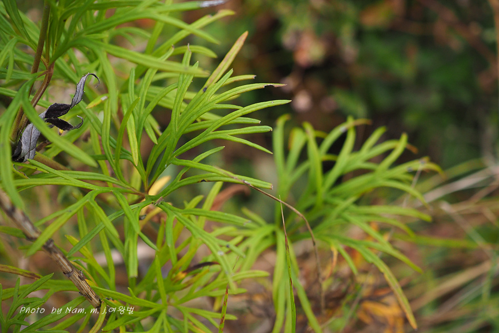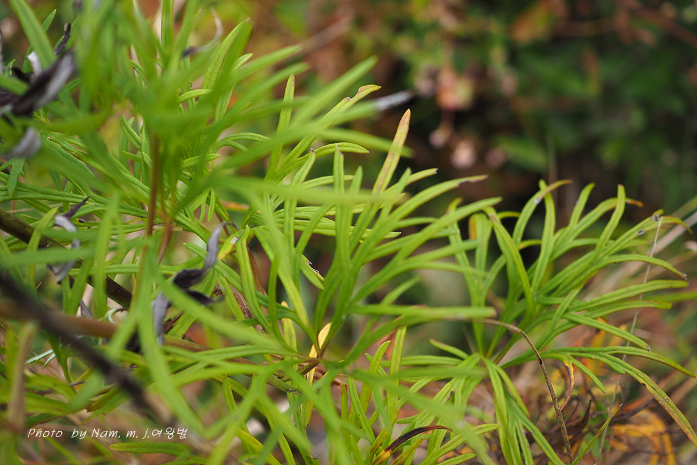 고성촌 녀석은 잎이 선형으로 매우 가늘게 갈라지고 열편의 폭이 일정하여 달라 보인다.