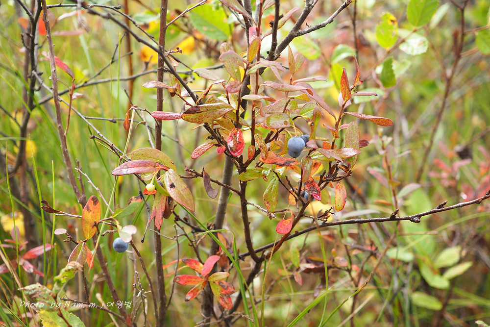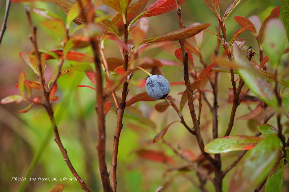 북게 단풍이든 들쭉나무에 마지막 미련 버리지 못한 열매가 아직도 대롱질이다.
