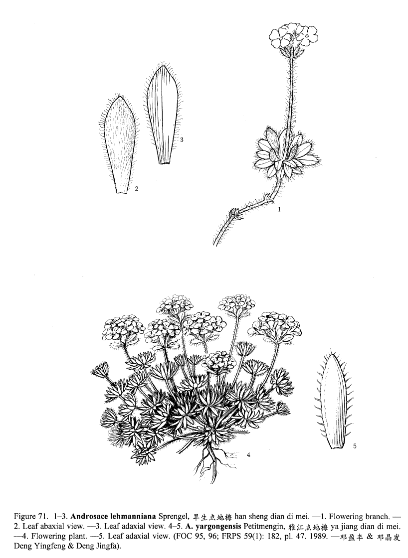 고산봄맞이 Androsace lehmanniana 두 가지 모두 실려 있다.