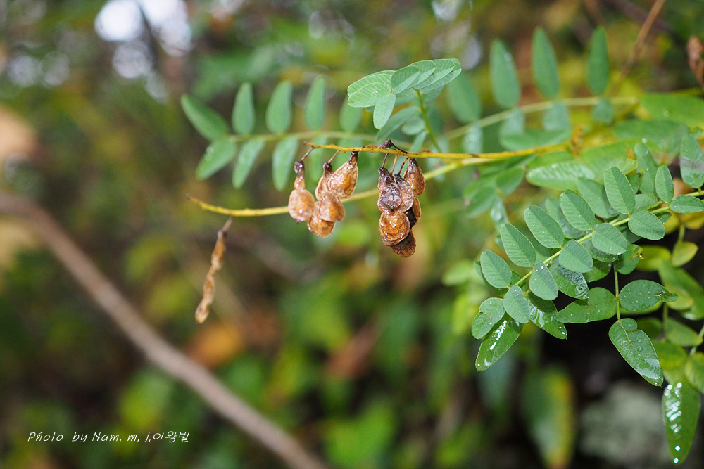 작은잎 4~5쌍의 깃꼴겹잎, 길이 10~15cm, 노란색 총상꽃차례,