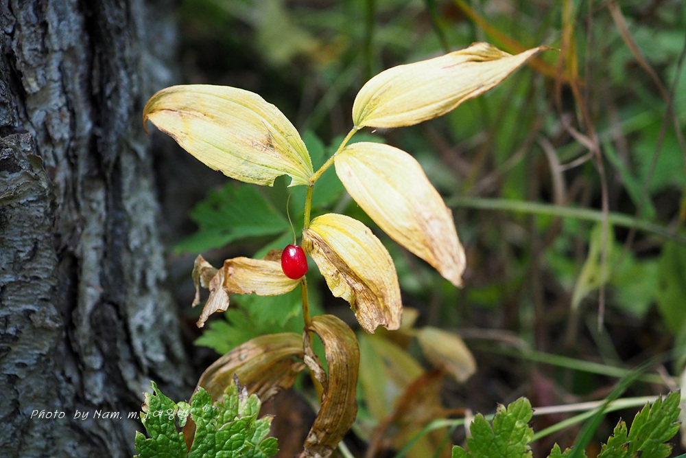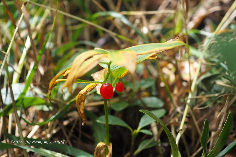 백두산에서 만나는 이 녀석은 일본에서 만난 Streptopus amplexifolius 보다 식물체와 열매가 더 작은 녀석이다.