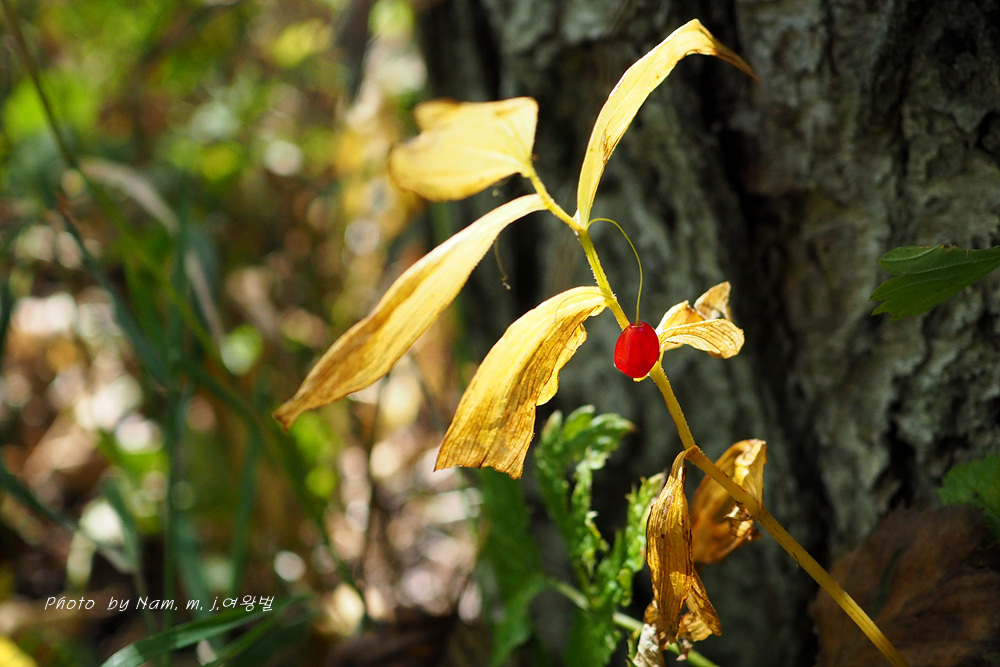 붉게 익은 열매를 달고 있는 죽대아재비 녀석이 벌써 잎이 누렇게 변하고 있었다.