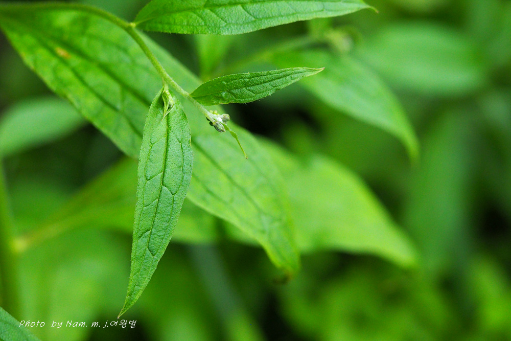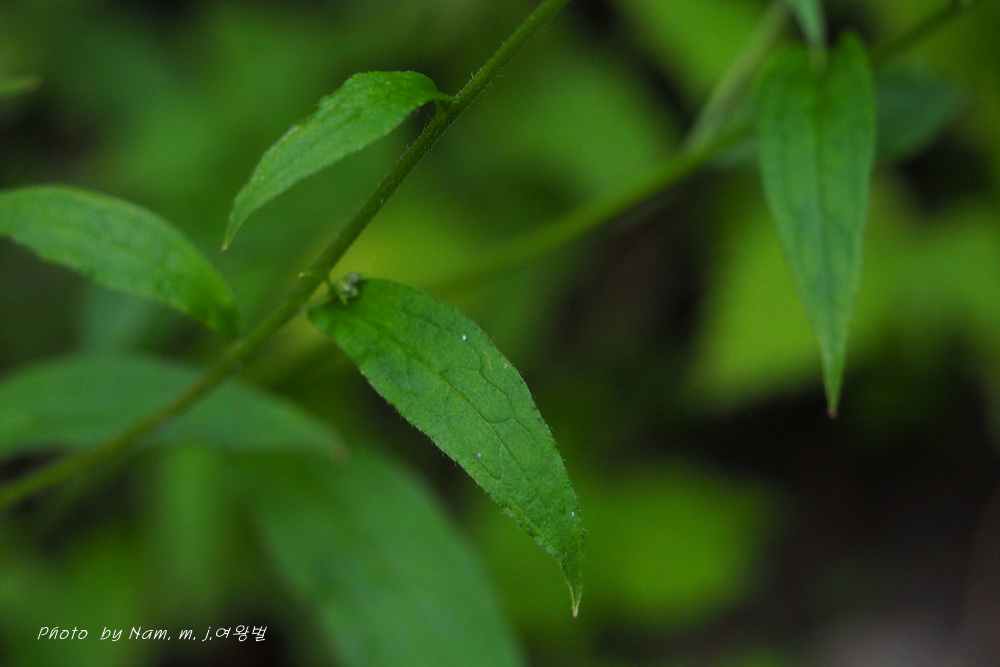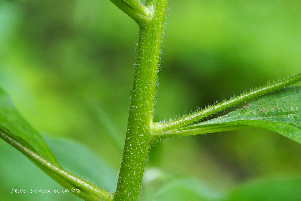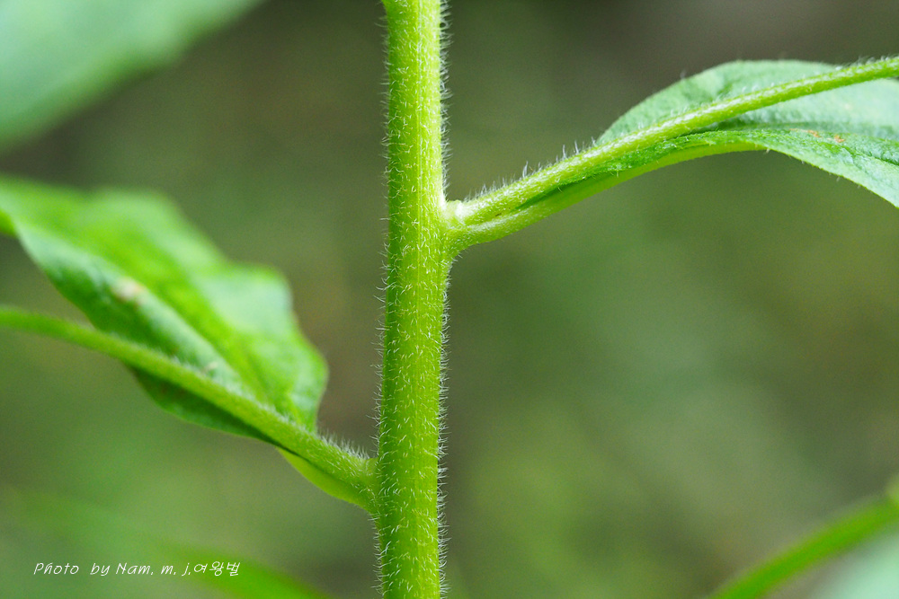 높이 40~80cm, 가지를 치고, 전체에 길이 2mm 정도의 털이 있다.