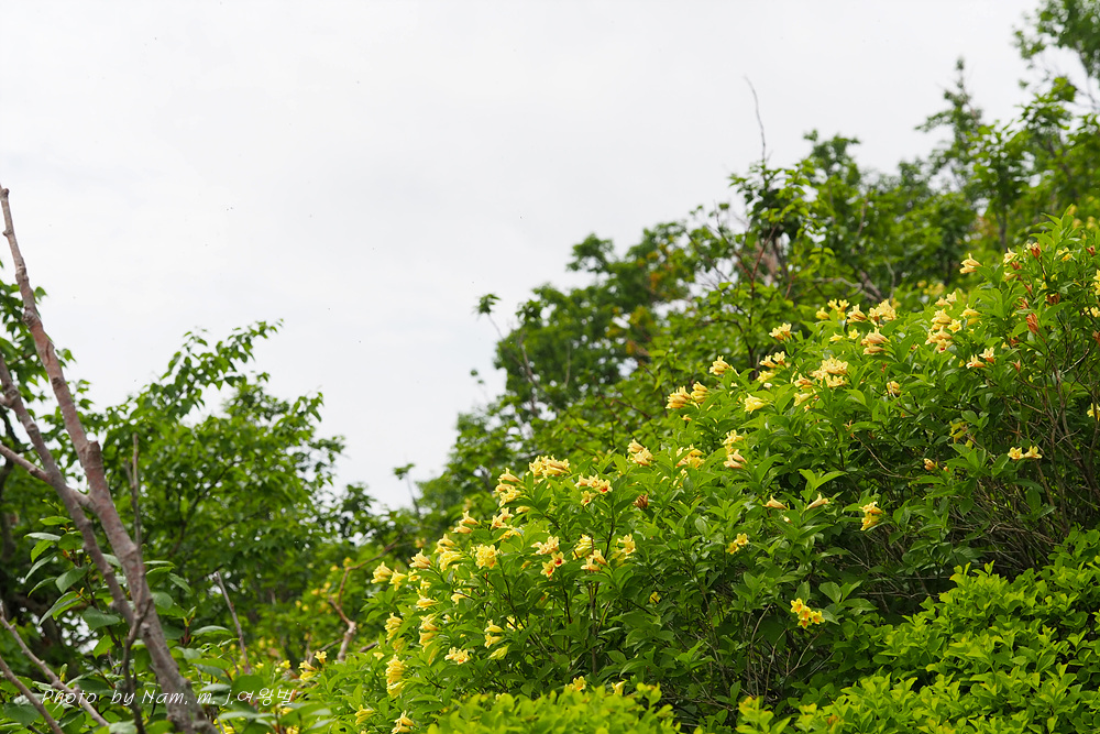 대설산 구로다케로 오르는 등산로 남사면 관목림 임연부에 우점하여 자라고 있다.