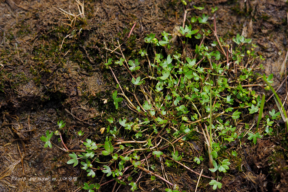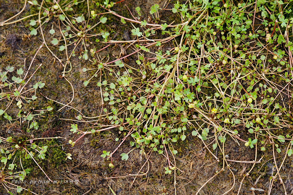최근에 중국에서 연구에 의하여 Ranunculus kangmaensis (= Halerpestes tricuspis var. variifolia) 임을 밝혀낸 것 같다.