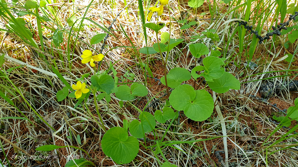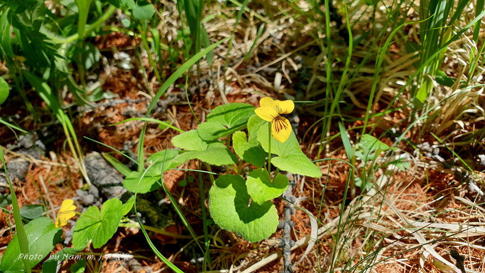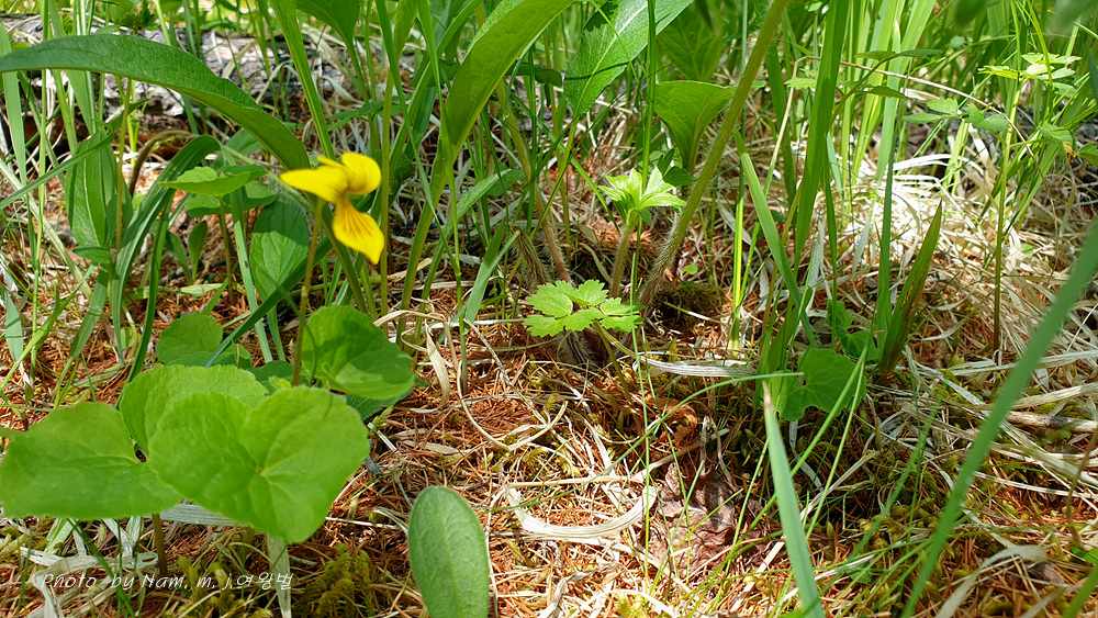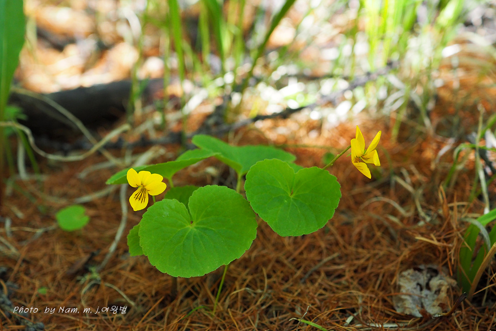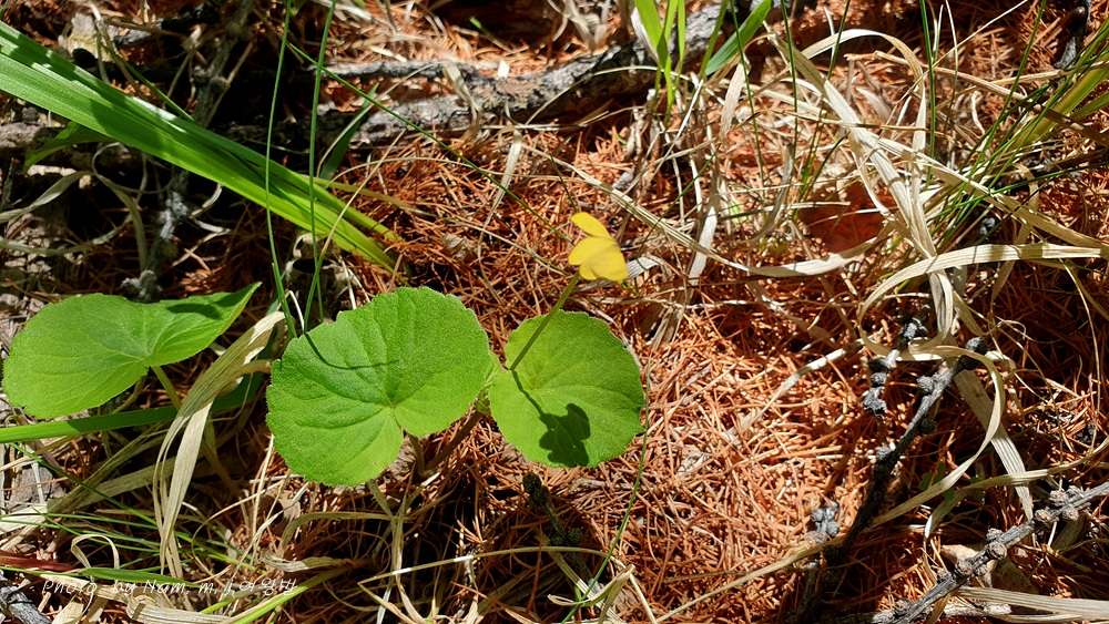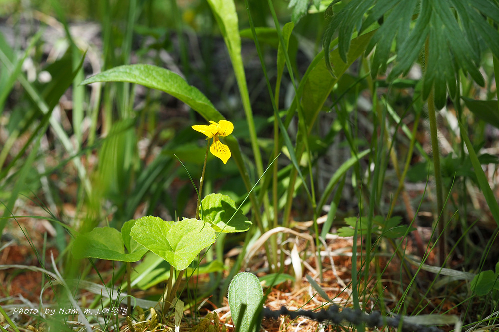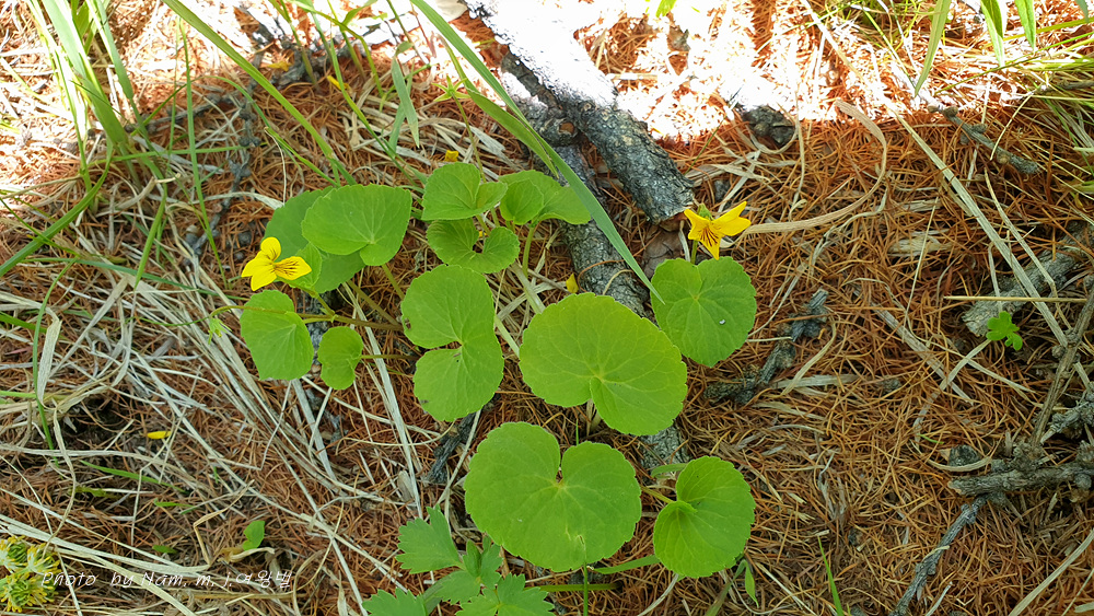 숲바닥에 둥근 잎에 노란 꽃을 피운 제비꽃을 발견하고 다들 반가워했다.