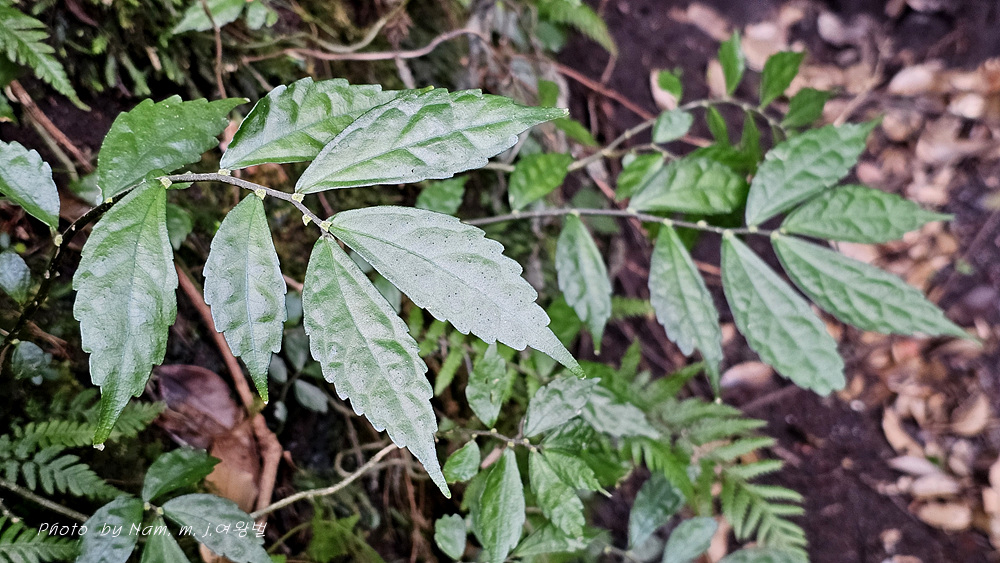 계곡의 중간 지점이라 폭이 꽤 넓었고 물이 말라 있어서 탐사하기엔 아주 적당하였다. 역시 음습한 그늘 지역에는 고사리가 많았는데 펠리온나무도 군락을 이루고 있었다.