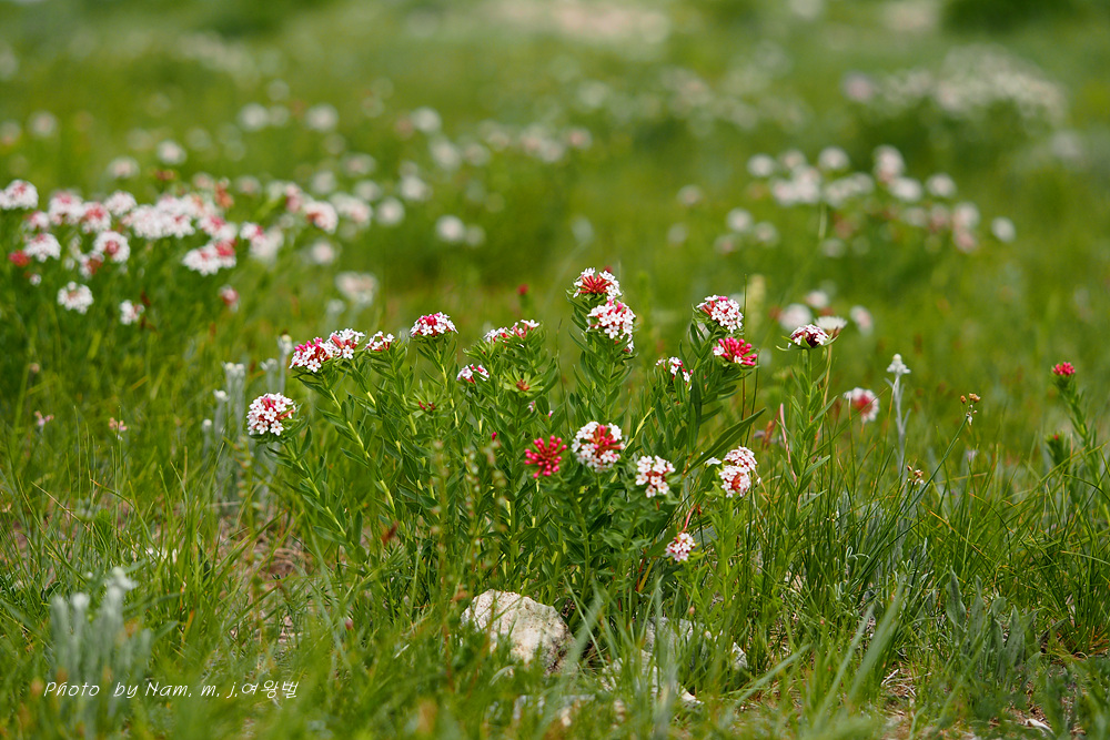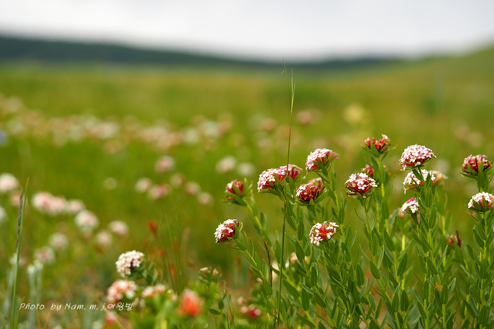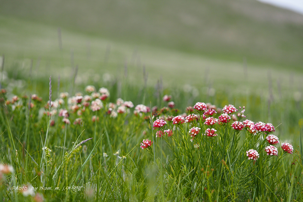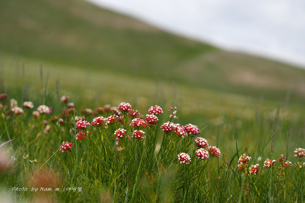 카투만두로 이동하다가 피뿌리풀이 가득 메우고 있는 산 아래 초지에 차를 멈추었다.