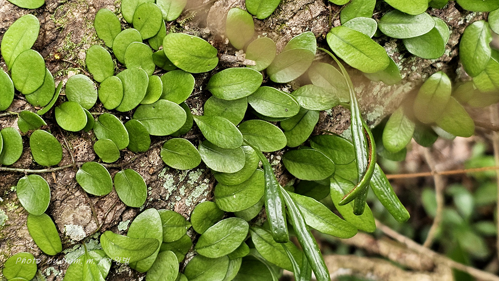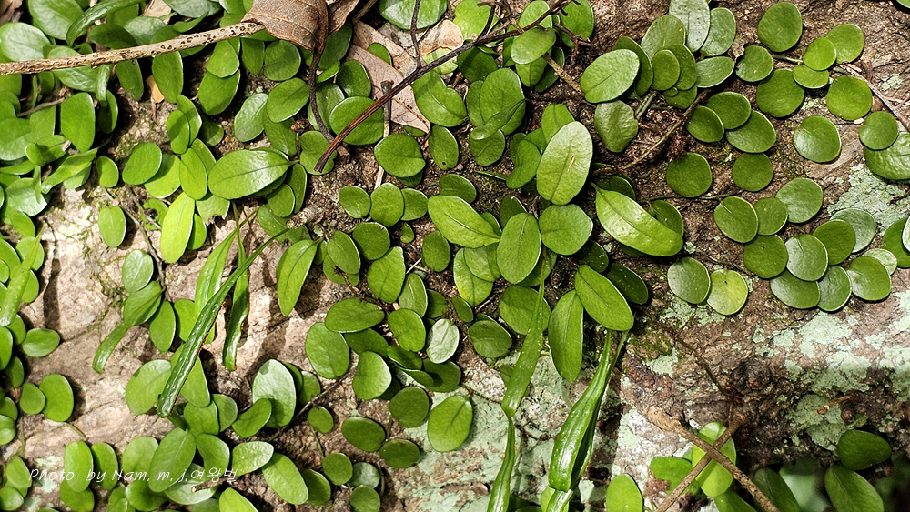콩짜개덩굴과 함께 섞여 있기도 하고 어떤 잎은 콩짜개덩굴처럼 둥글게 나타나기도 한다.