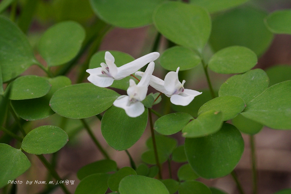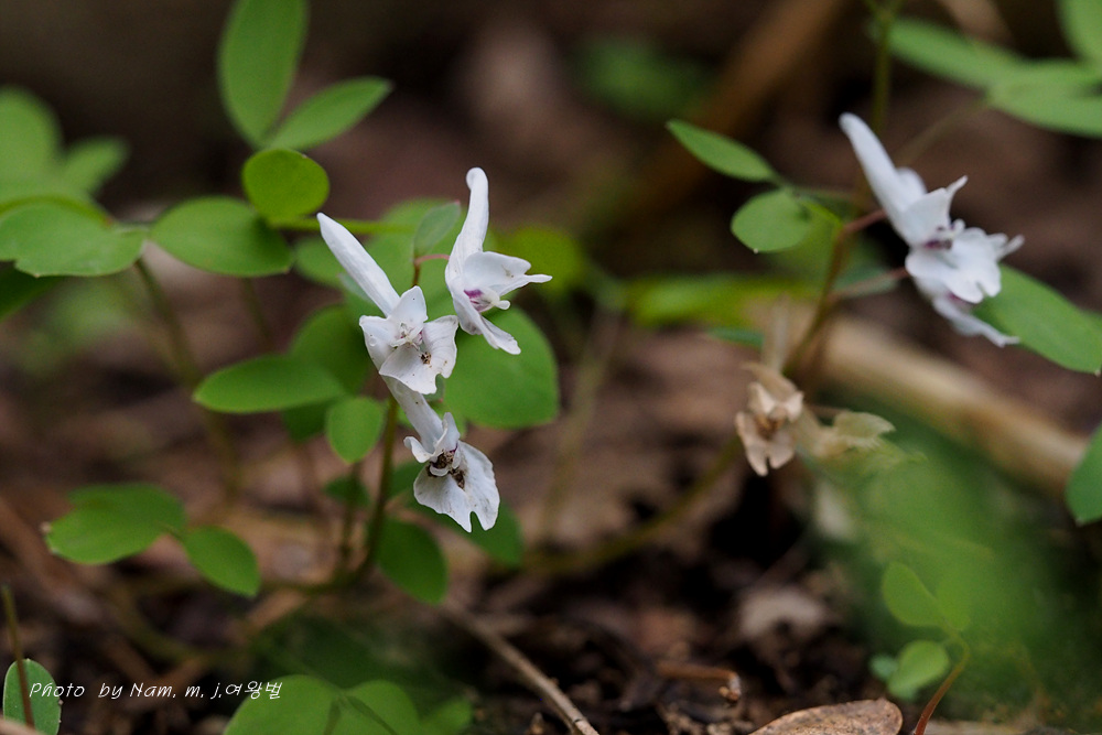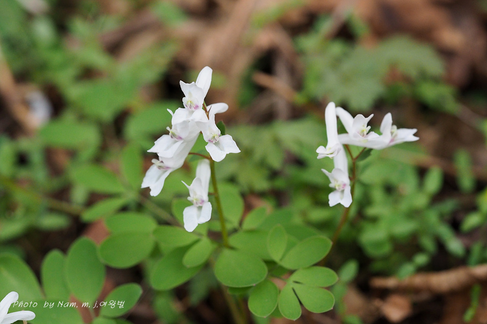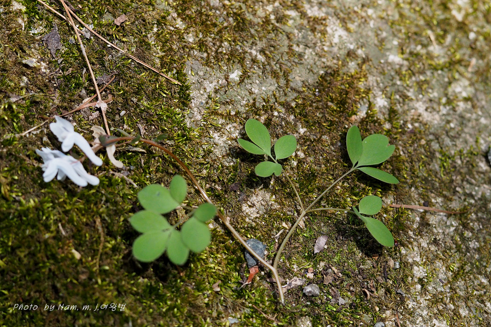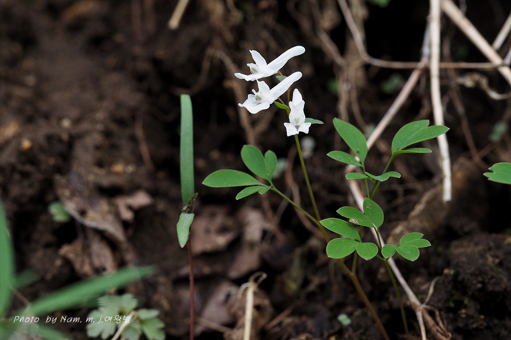 이 녀석은 각시현호색, 남도현호색처럼 꽃의 생김이나 크기가 왜소한 형으로 흰색 현호색과 다른 녀석이다.