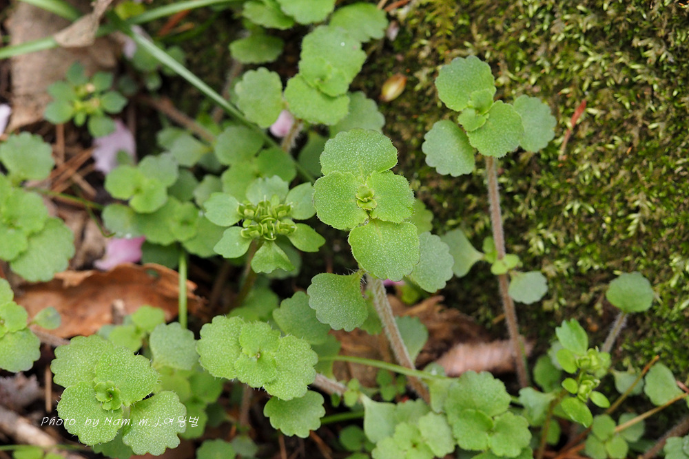 | 기는괭이눈(범의귀과 괭이눈속) Chrysosplenium epigealum J.W. Han & S. H. Kang (0) | 2024.04.22 |
