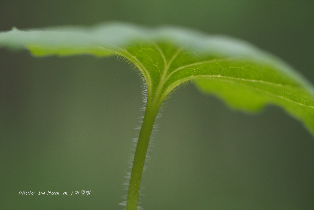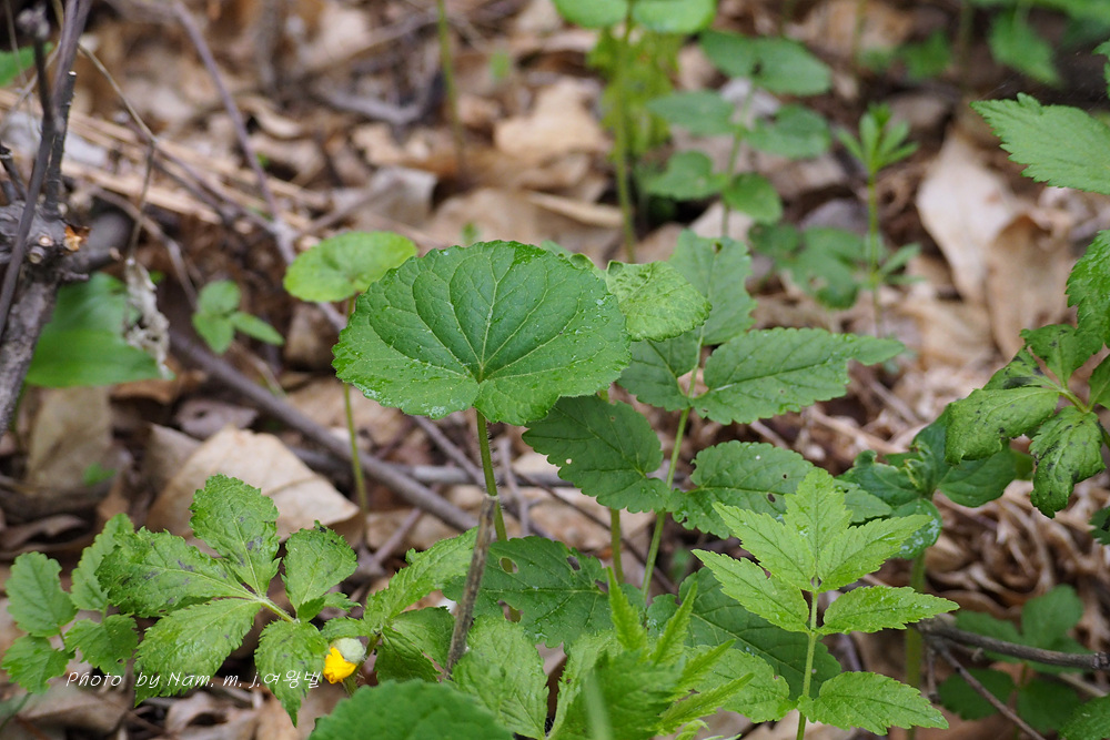 키가 10~15cm 정도로 크고 , 줄기, 잎자루, 잎뒷면에 백색 퍼진 털이 많고 3장의 줄기잎을 가지고 있다.