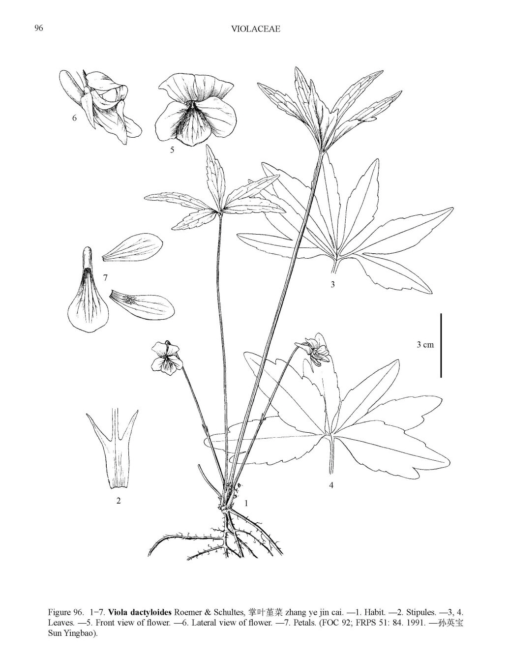국가표준식물목록에 국명이 등록되어 있고, 한반도생물다양성포털과 생물종정보시스템에도 표본도 없고 기재문도 없이 이름만 올라 있다. 아마도 잎이 장상으로 갈라져 있어서 손잎제비꽃이란 이름을 얻은 것 같다. 중국에서는 야자수잎제비꽃으로 기록하고 있다.