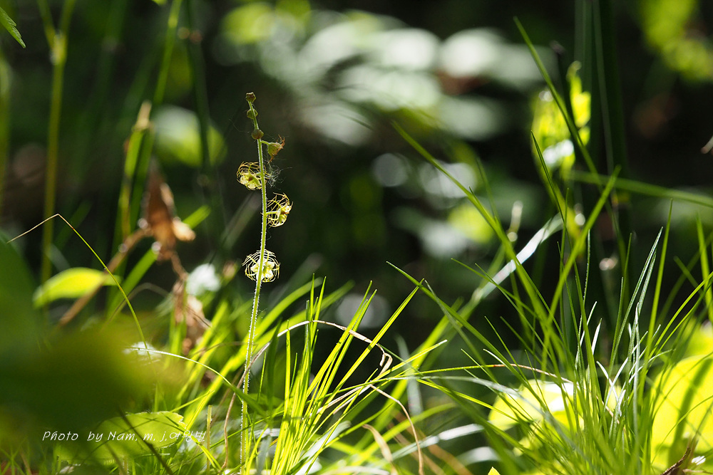 숲 바닥에 깔린 동글동글한 잎을 뒤지면서 화서가 올라온 녀석을 찾느라고