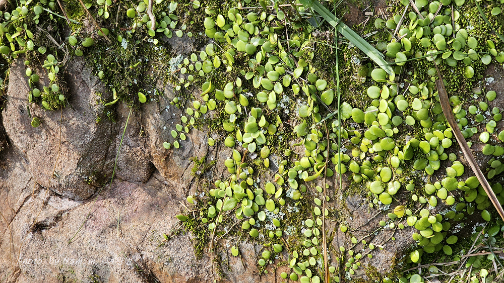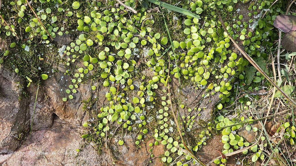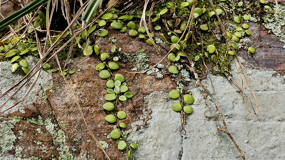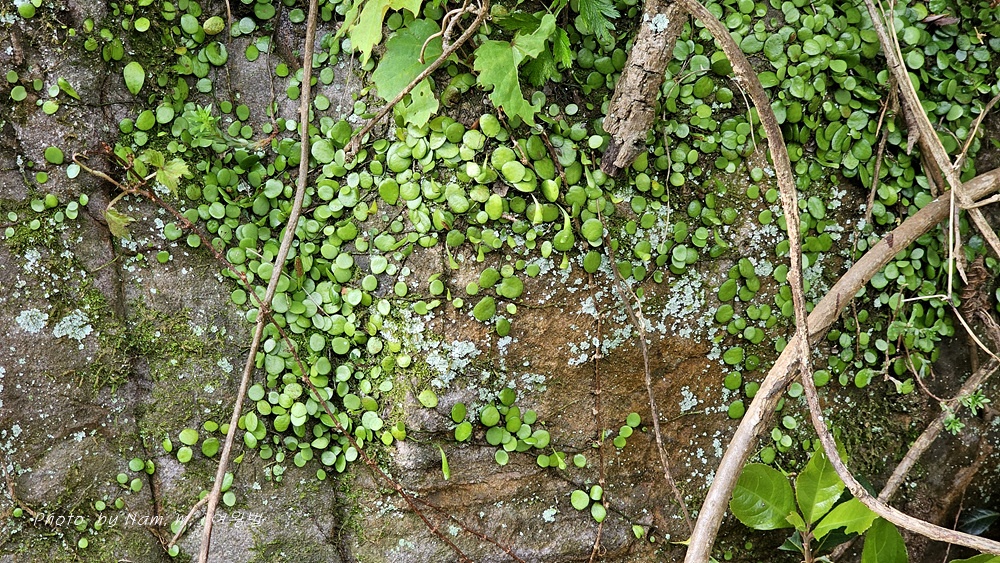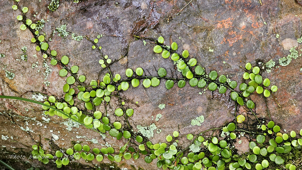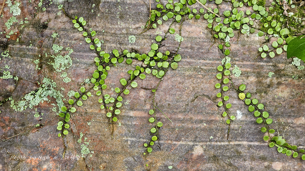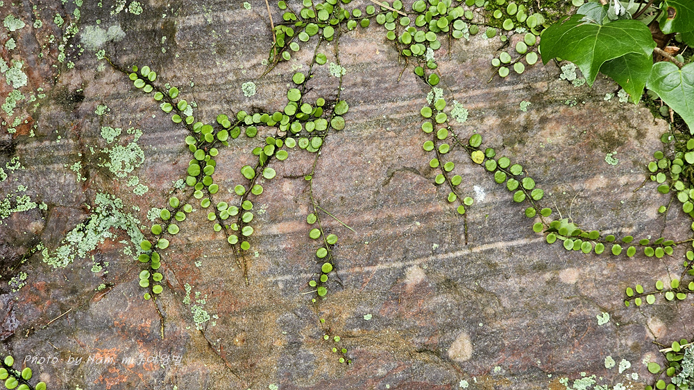바위벽에 콩짜개덩굴이 상형문자를 그리고 있다.