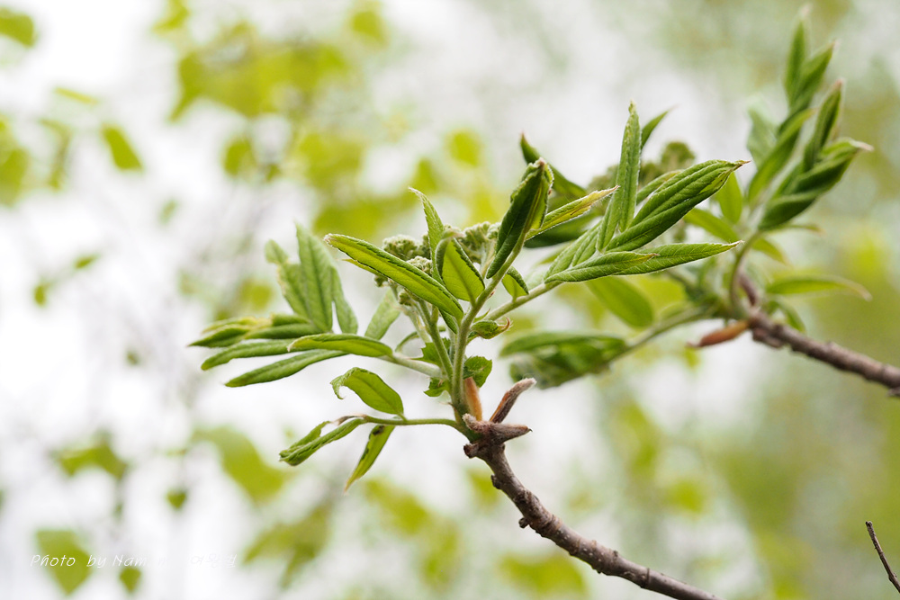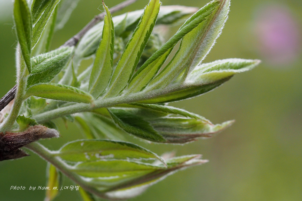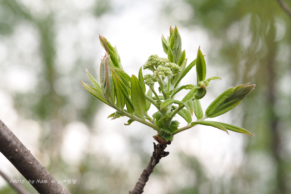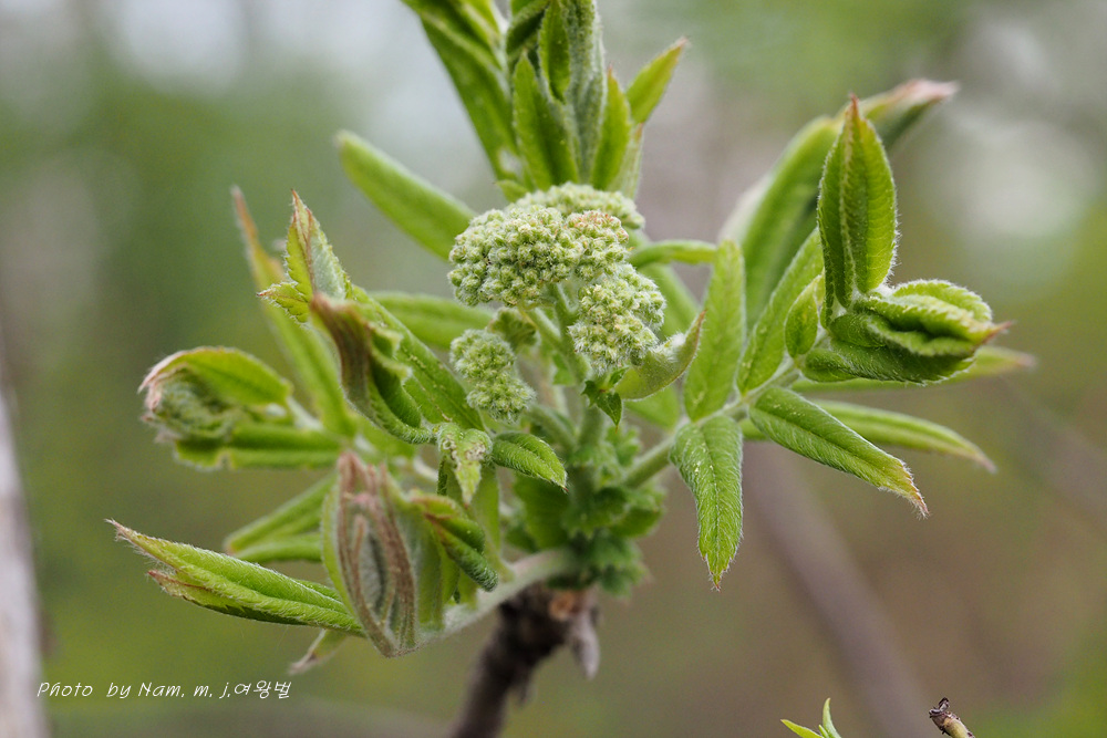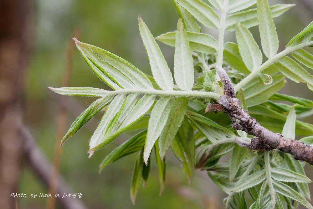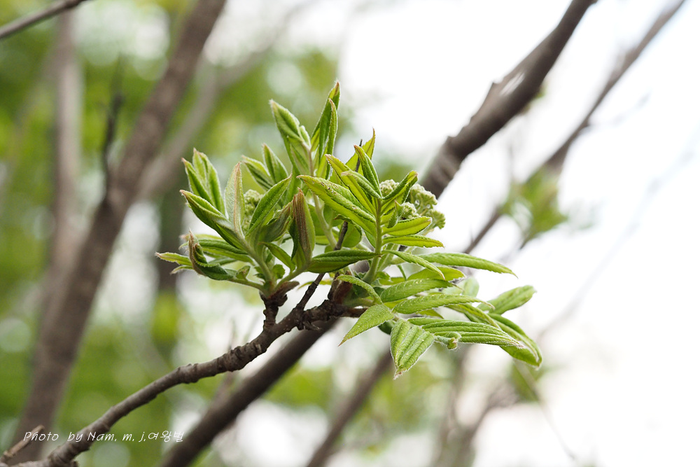 겨울눈에 흰털이 빽빽하게 나고 점성이 없으며 작은 잎 9~15장으로 된 깃꼴겹잎이다.