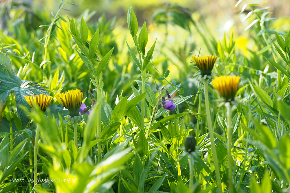 도로변 조경수 아래는 그대로 풀밭이라 선연리초가 무더기를 이루어 아침 햇살에 샤워 중이다.