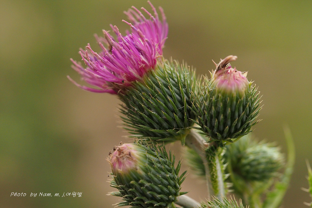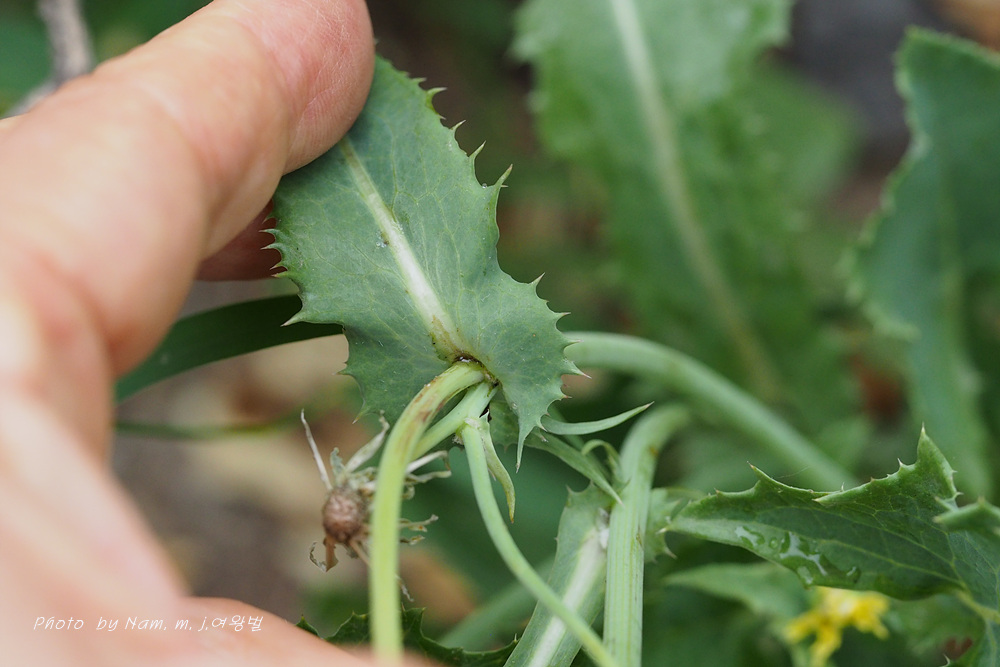 여기도 외래식물이 유입된 게 아닐까 하여 급한 마음과 달리 더딘 발걸음에 '아야 아야' 거리면서 간신히 다가가니 서양가시엉겅퀴 비슷한 녀석이다