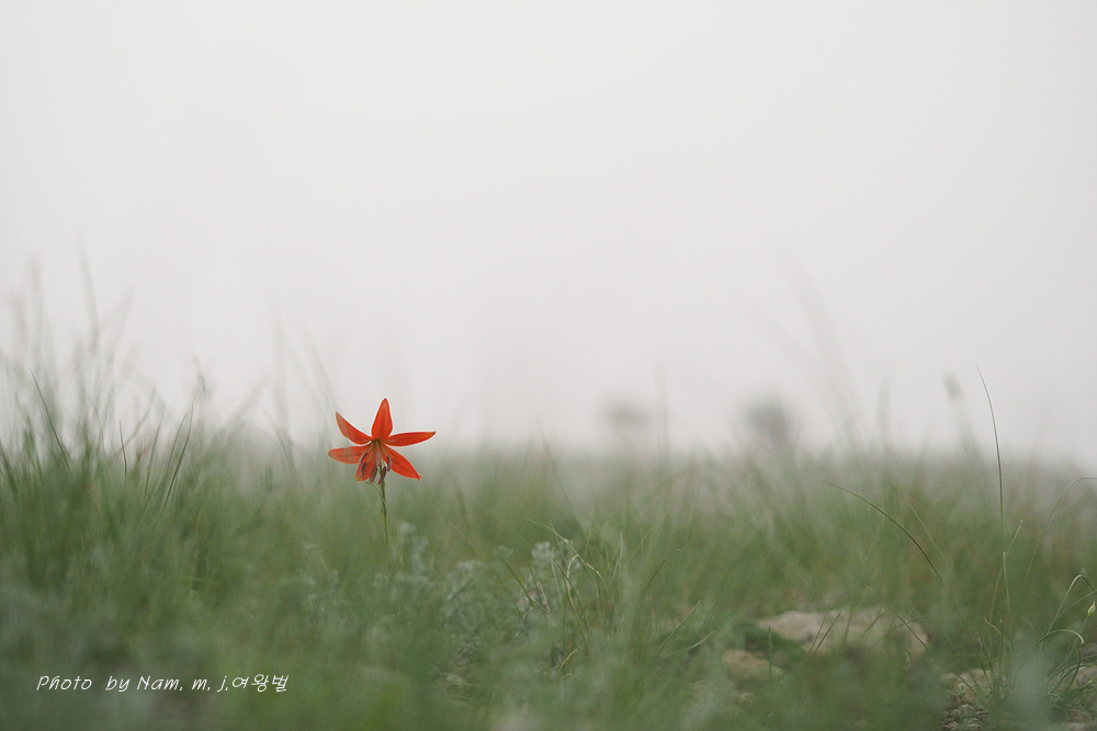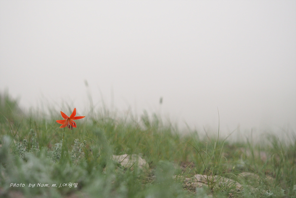 해가 떠오르기를 가다리는데, 나지막한 앉은뱅이 큰솔나리가 시선을 잡았다.