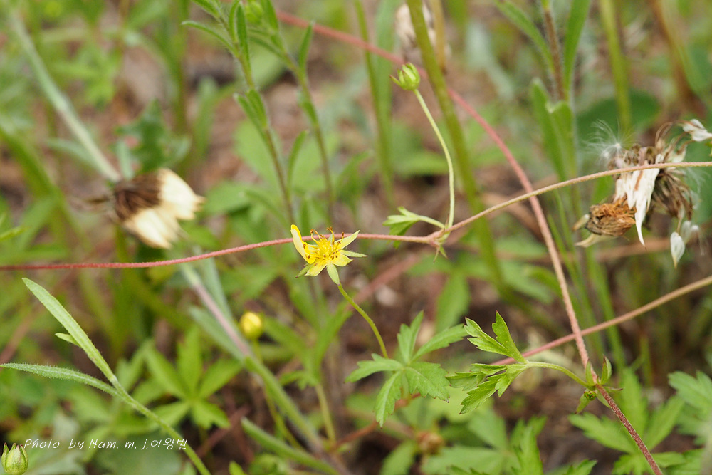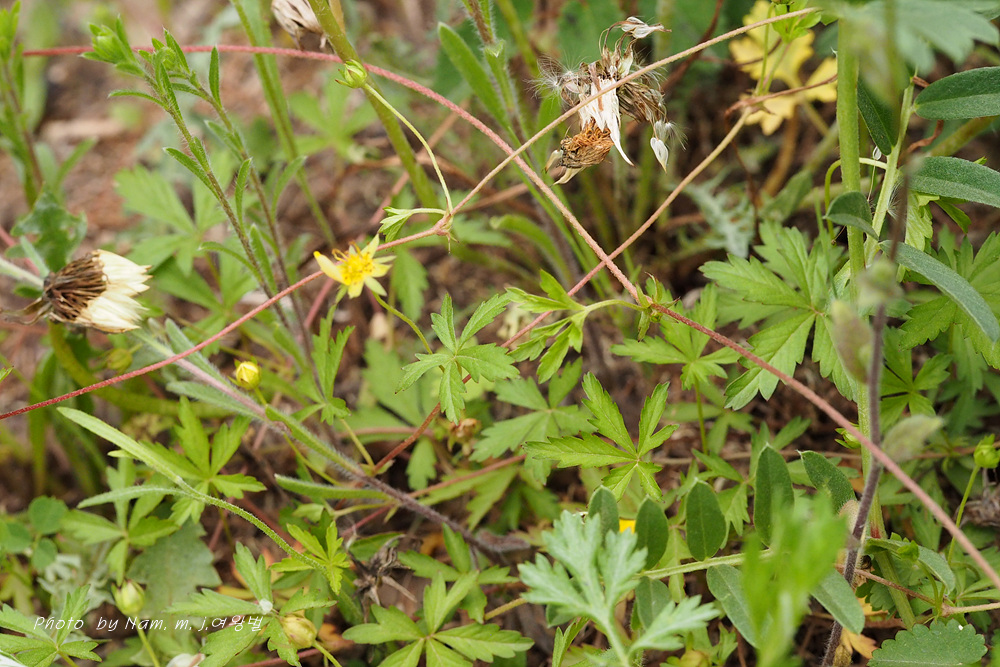 이 녀석은 중국의 초지 바닥을 기어 다녀서 다른 풀들에 가려져서 눈에 잘 띄지 않는 녀석이었지만 탐사하는 초지마다 이 녀석이 보였다. 국명이 덩굴뱀딸기로 줄뱀양지꽃이란 이명을 가지고 있다. 자료를 찾아 보면 우리나라에도 분포하는것으로 표기 되어 있지만 아마도 북부지역이 아닐까 한다.