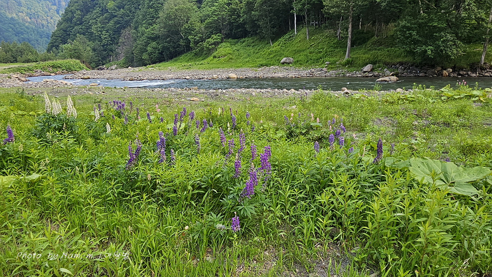 숙소 주변 계곡부에 루피너스가 화사하게 꽃을 피우고 있다.