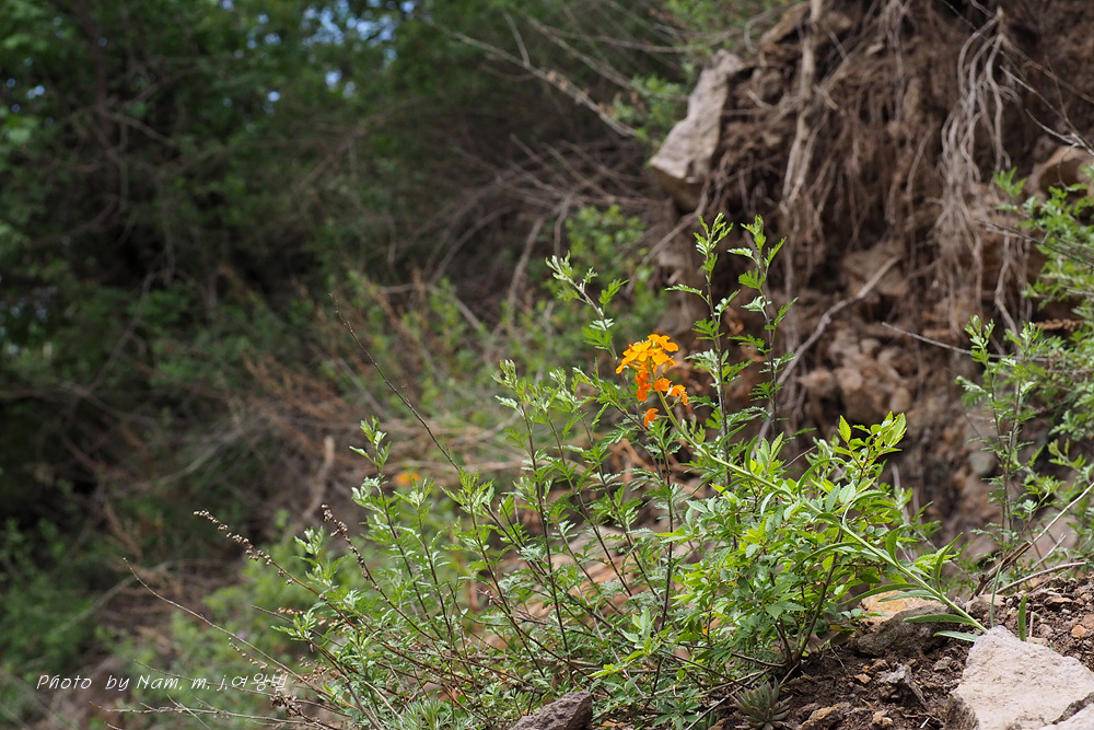짙은 황금색 꽃이 유난히 눈에 띄던 녀석으로 꽃잎이 크고 줄기와 잎자루 화경에 털이 많았다.