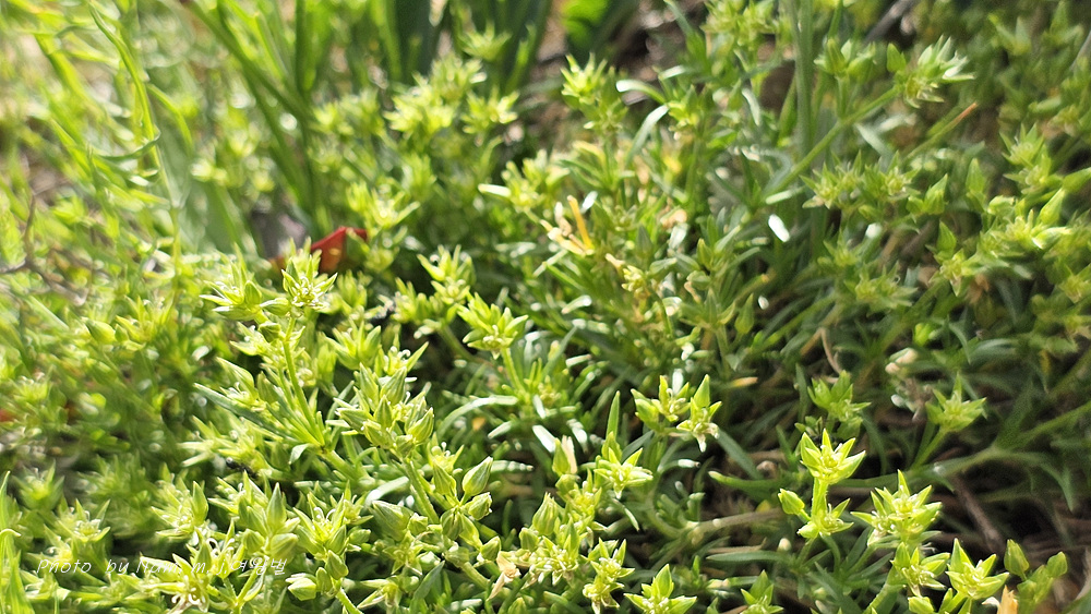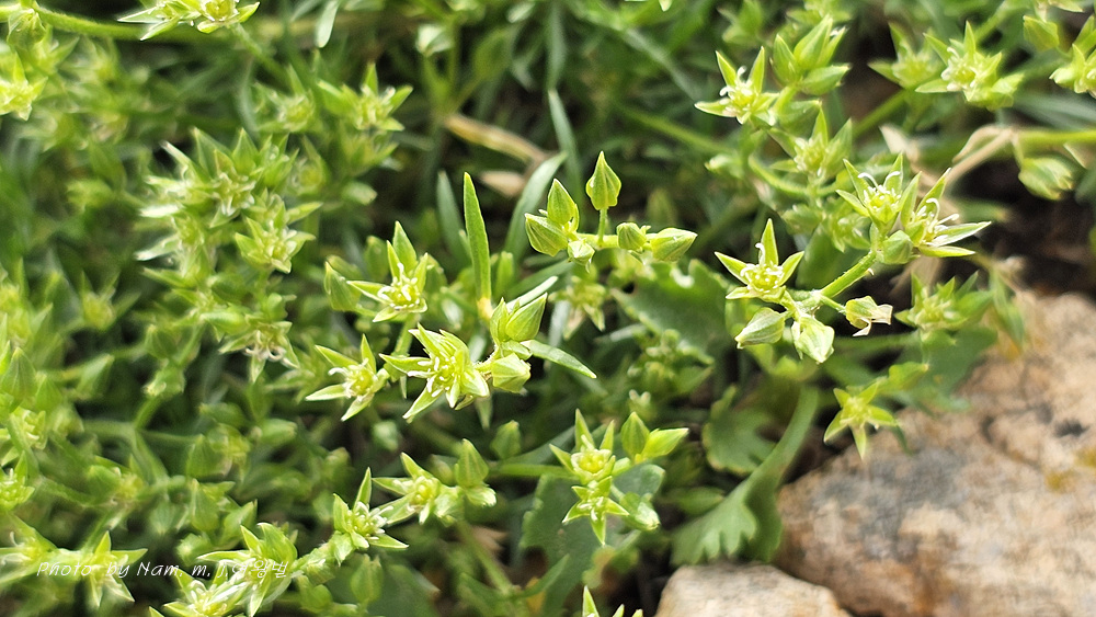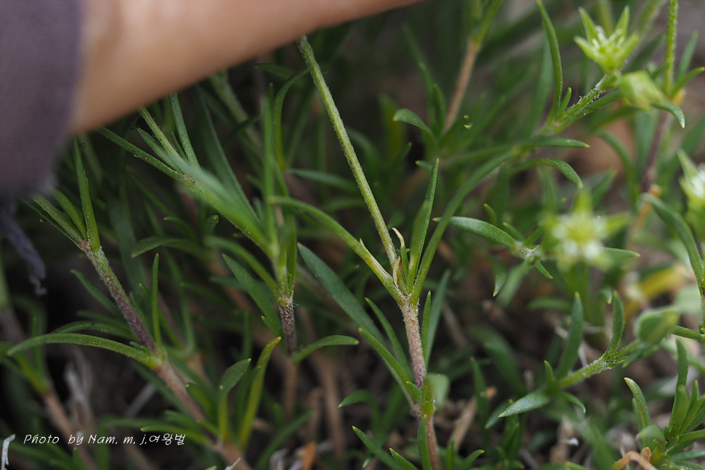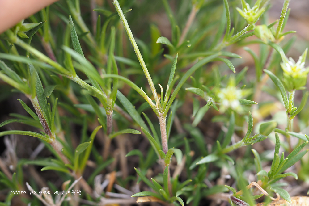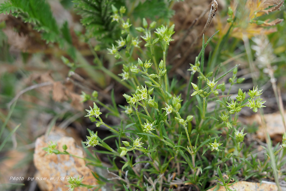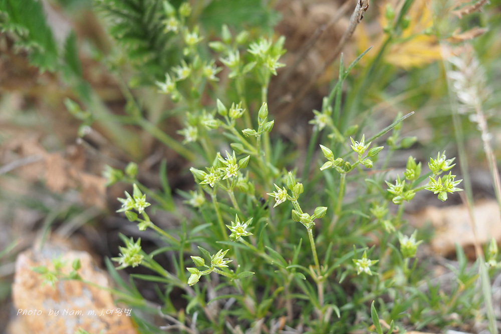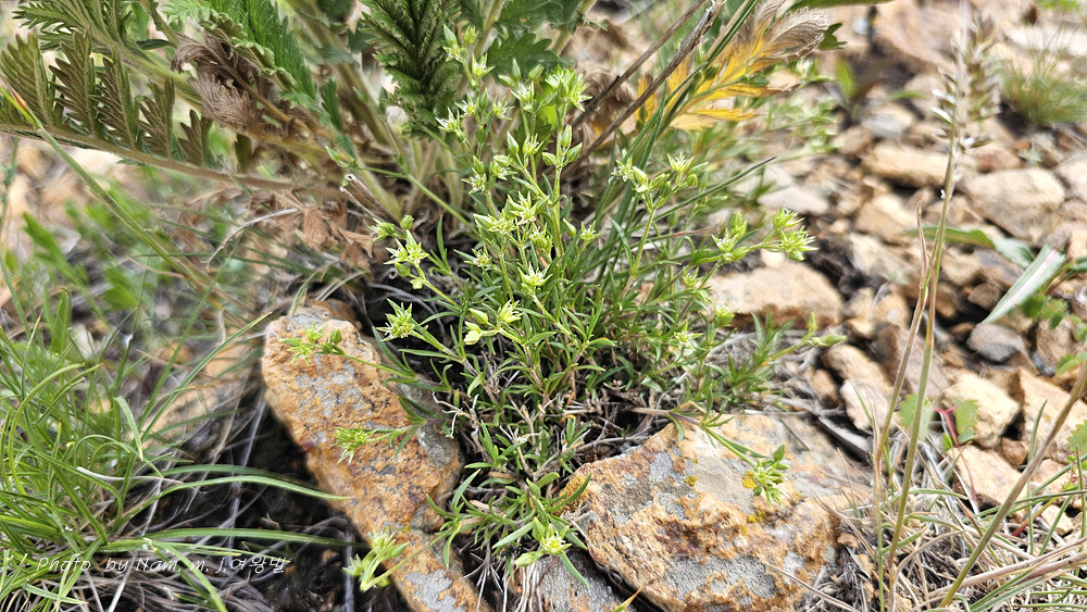 바위산 위쪽에서 만난 녀석이다. 아주 작은 선형의 꽃잎이 몽골에서도 만난 적 있었던 같아서 찾아보니 별꽃속 녀석 Stellaria cherleriae으로 정리해 두었다. 큐에서는 Adenonema cherleriae의 이명으로 처리를 해 두었다. 우리나라에는 없는 속이다.