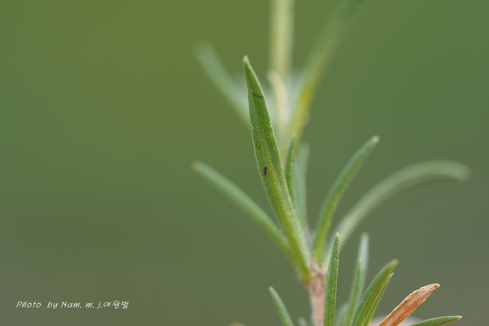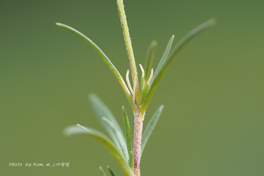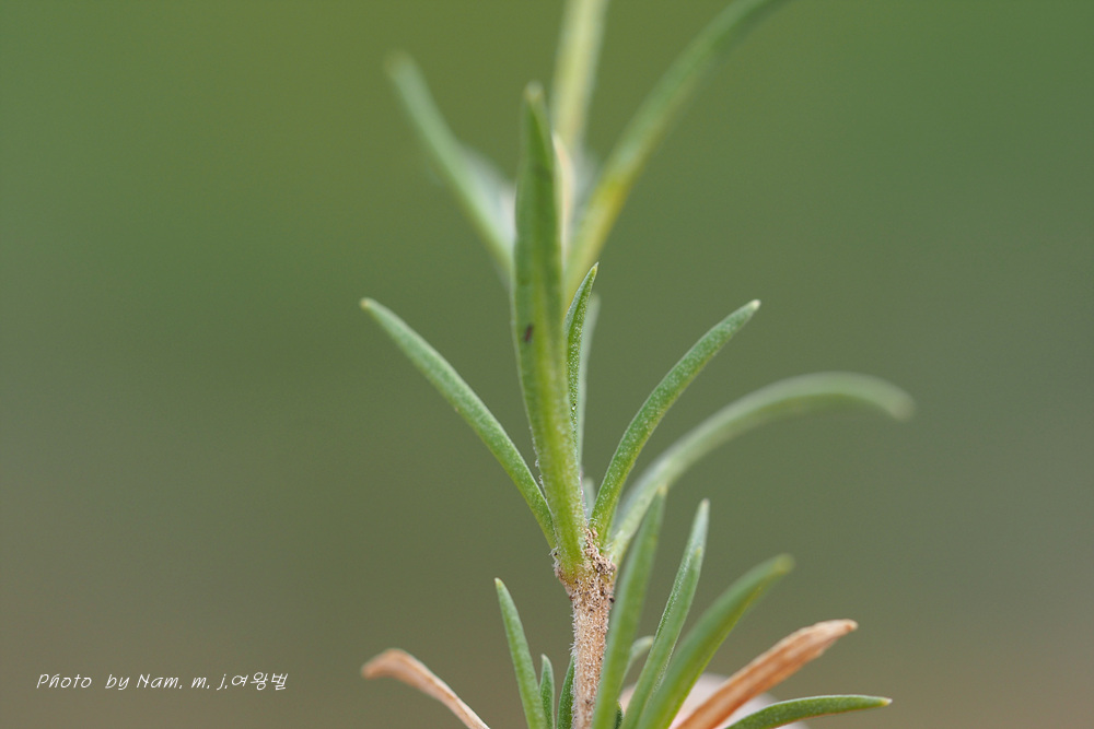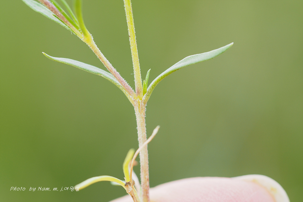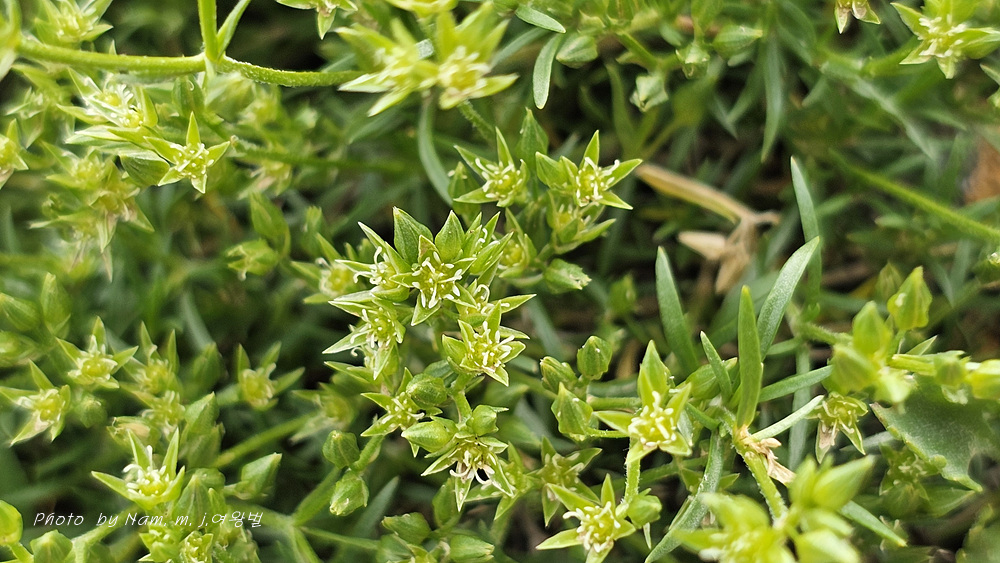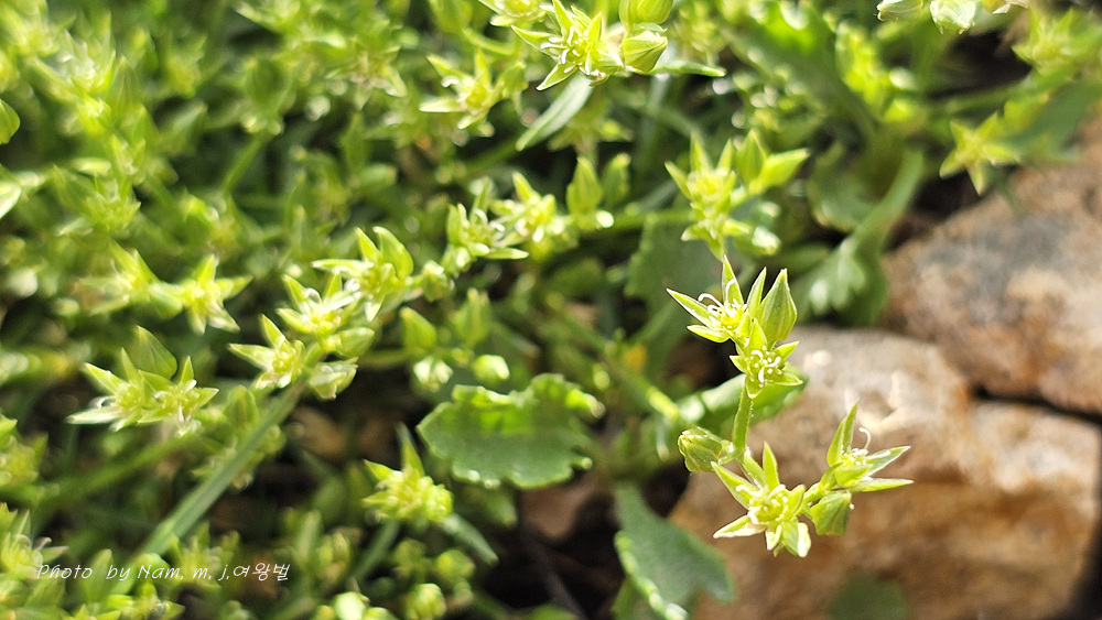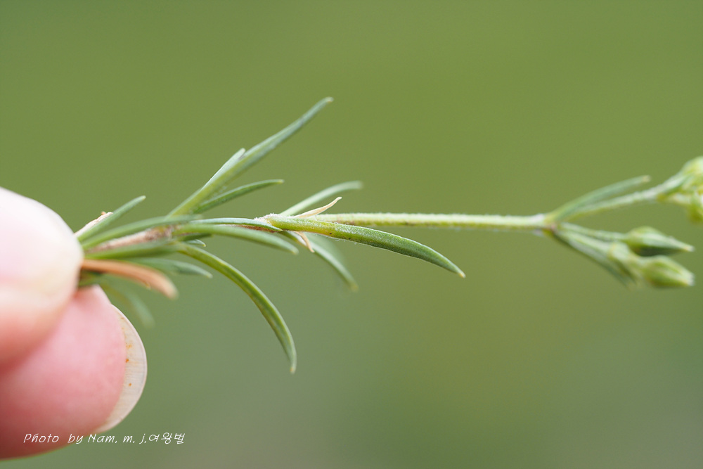 바위산 위쪽에서 만난 녀석이다. 아주 작은 선형의 꽃잎이 몽골에서도 만난 적 있었던 같아서 찾아보니 별꽃속 녀석 Stellaria cherleriae으로 정리해 두었다. 큐에서는 Adenonema cherleriae의 이명으로 처리를 해 두었다. 우리나라에는 없는 속이다.