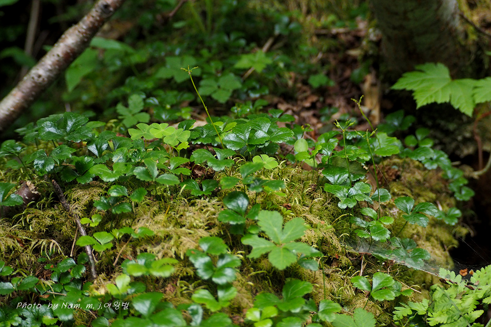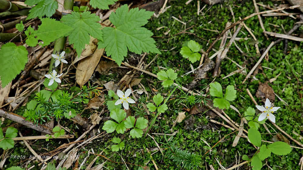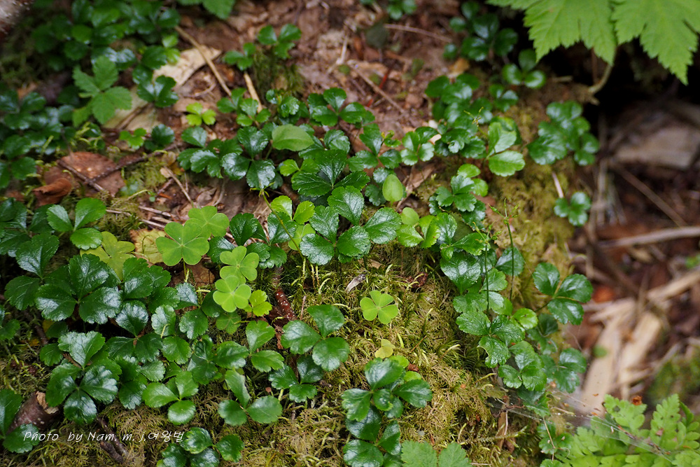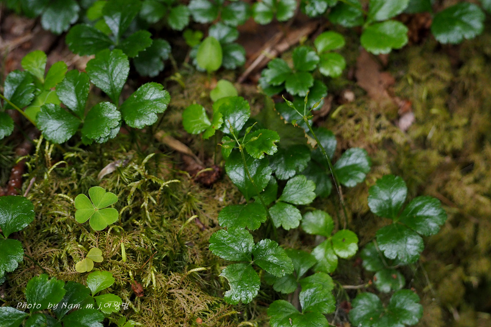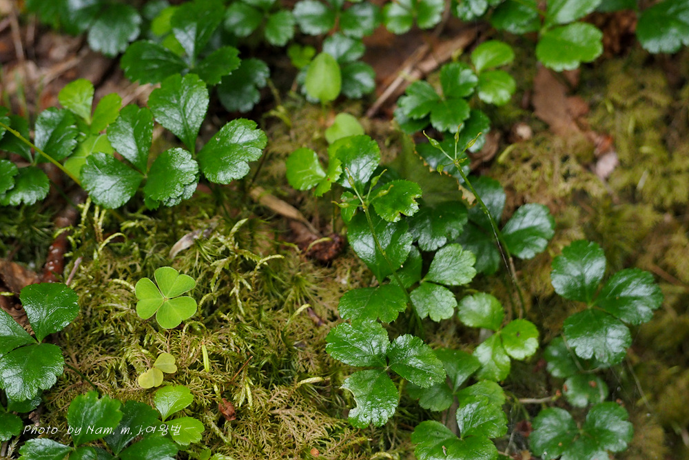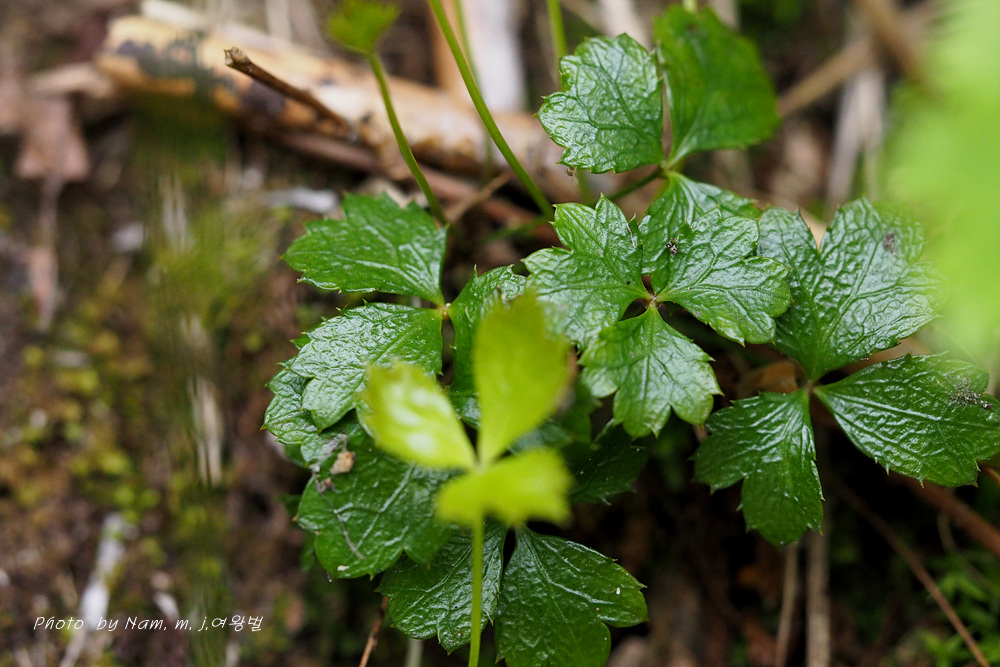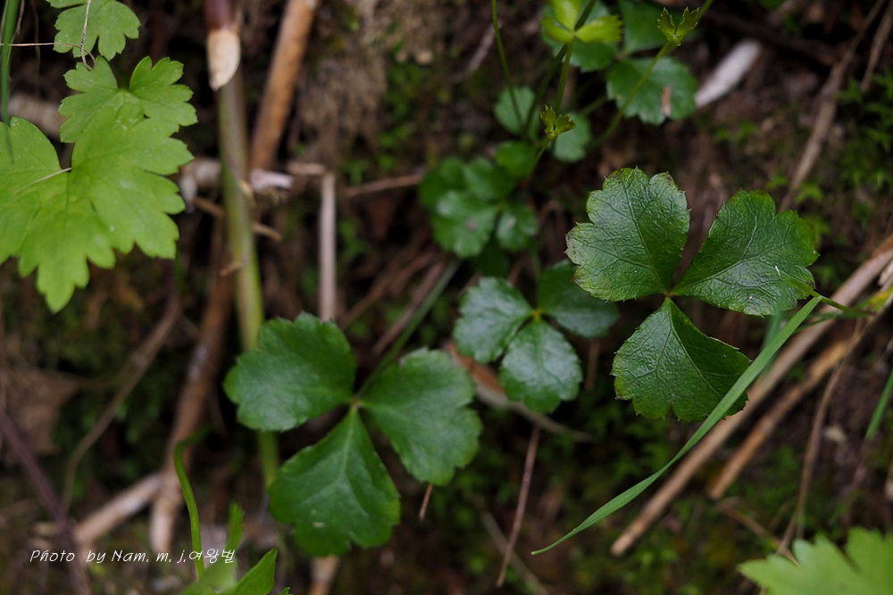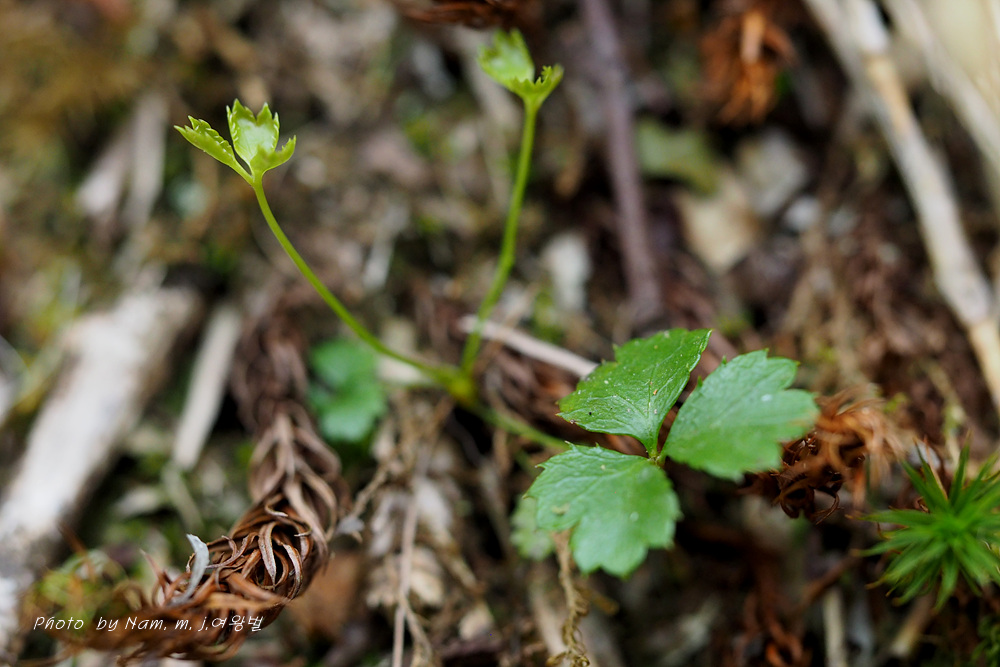 학명이 Coptis trifolia 로 일본명 '미쯔바오우렌' メツバオウレン 이다. 한자명 三葉黄蓮 이다