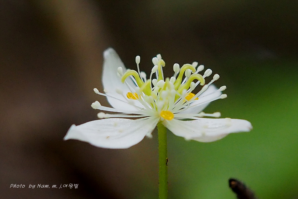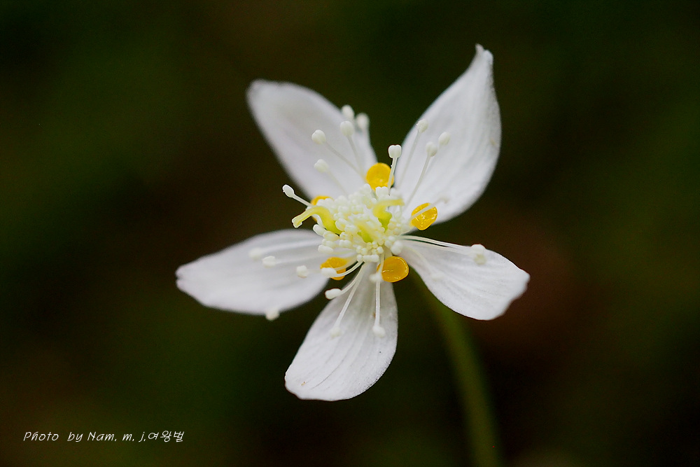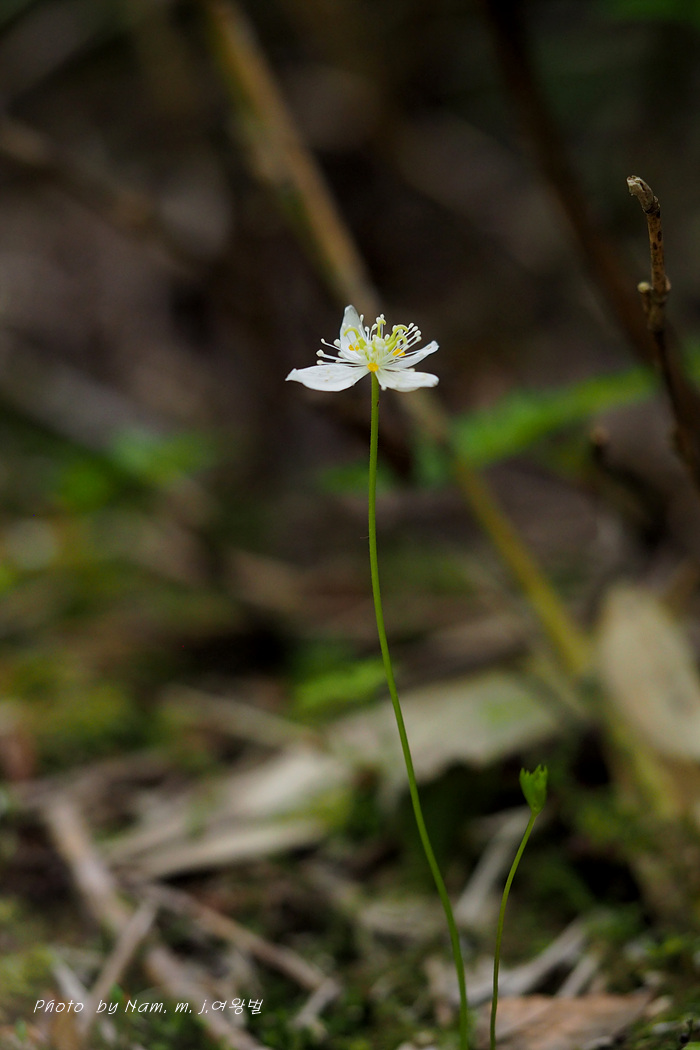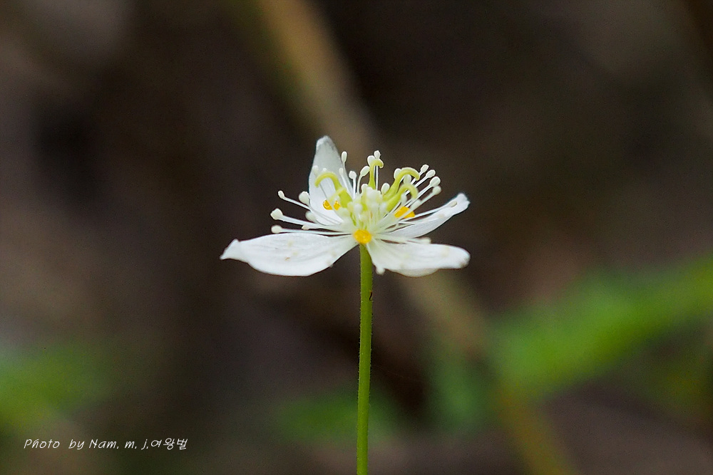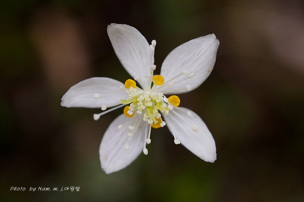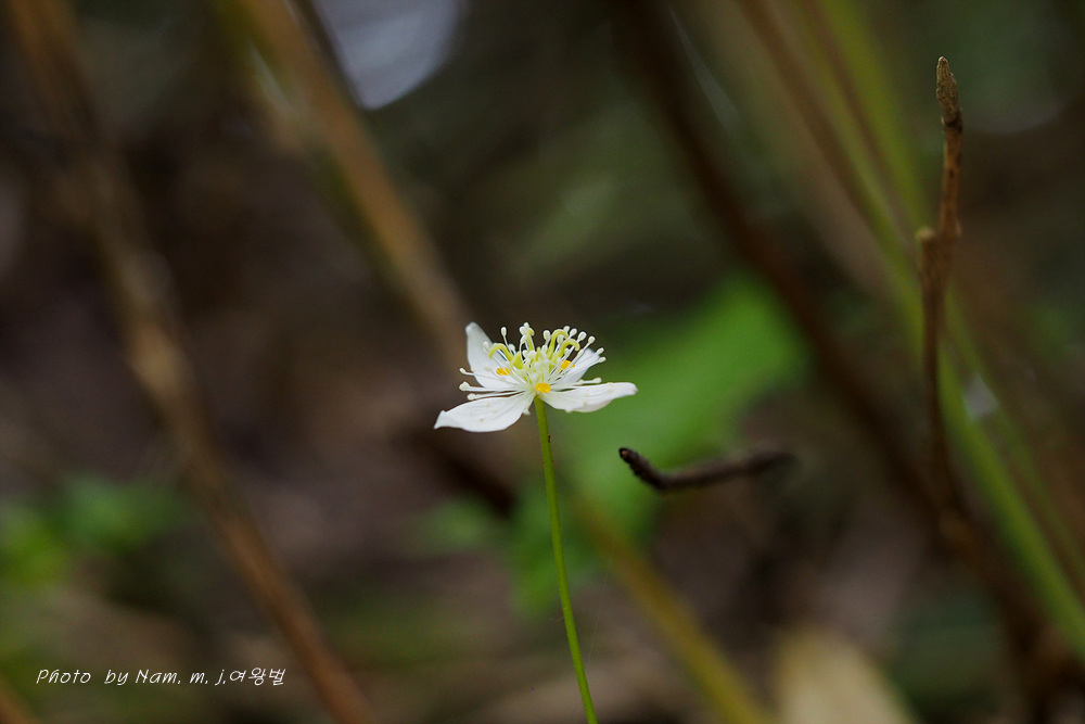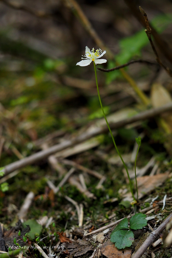 너도바람꽃이나 변산바람꽃 처럼 4~5장의 백색 꽃받침 안에 노란 깔대기 모양의 꽃잎을 보고 분명 바람꽃 종류겠거니 했더랬는데 황련속 식물이었다.