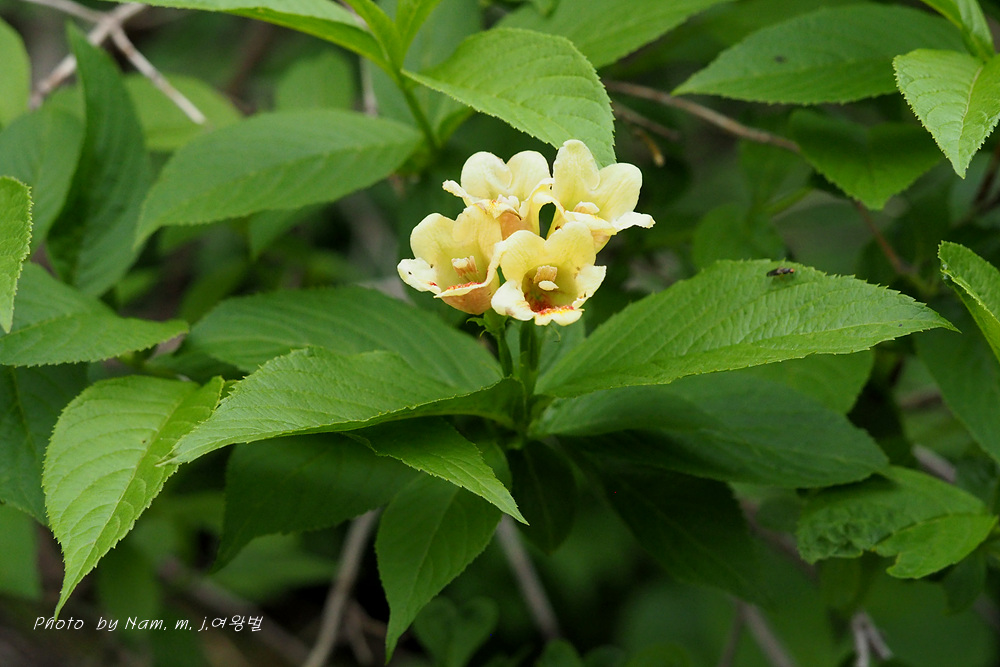 경남 천성산의 주걱댕강나무를 닮은 이 녀석들의 개화가 상태가 아직 만개하지 않았다.