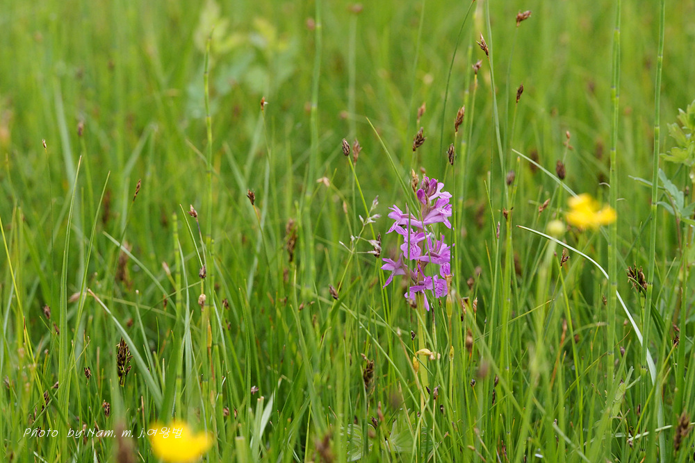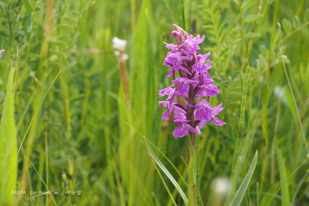 몽골 습원에서도 만났는데 난초속 전공한 꽃동무가 북방나비난초 Orchis salina 라고 알려 주었더랬다.