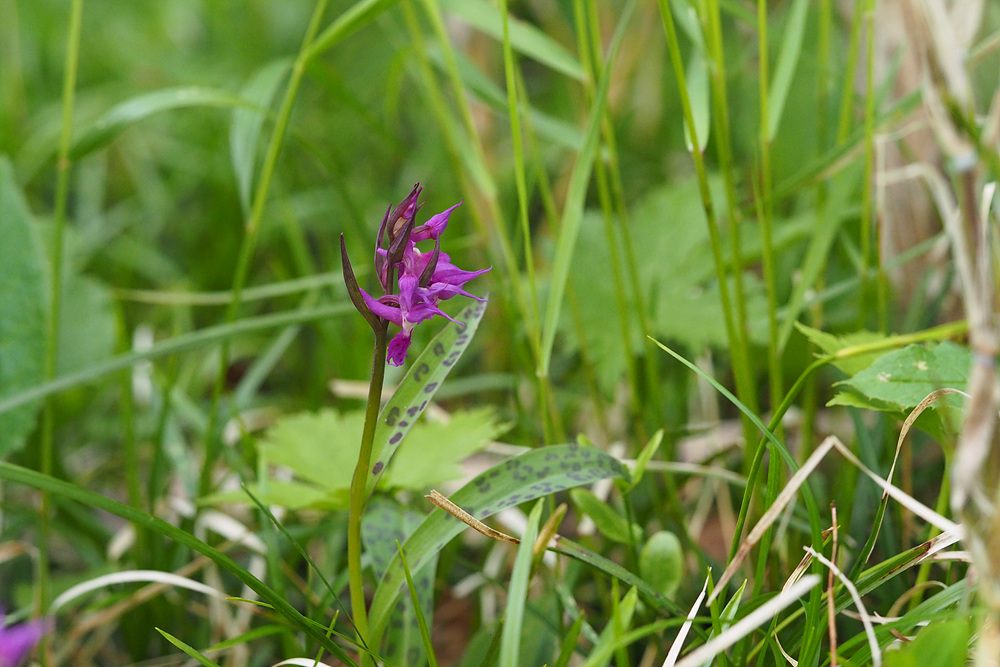 등산로변에 점박이 손바닥나비난초가 불쑥 나타난다.