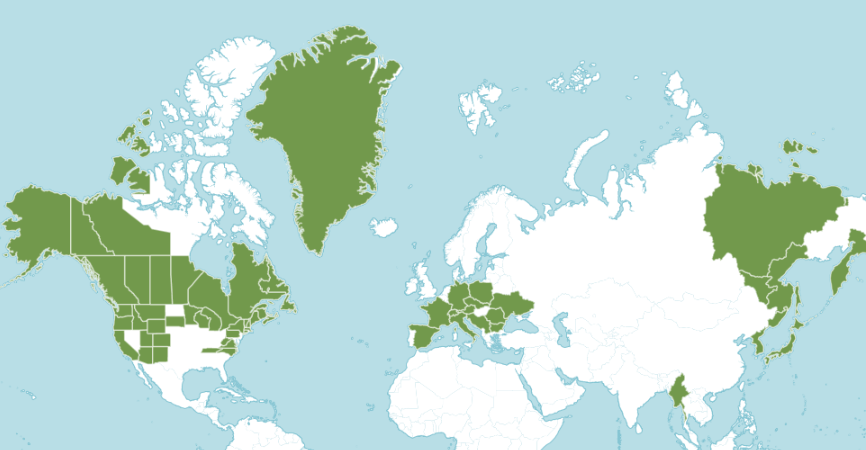 일본에서는 북해도와 혼슈의 아고산대 숲에서 자라고 있다.