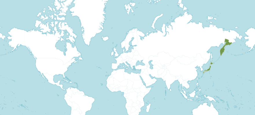 원산지는 캄차카에서 일본 (홋카이도, 혼슈), 알류샨 열도이다.
