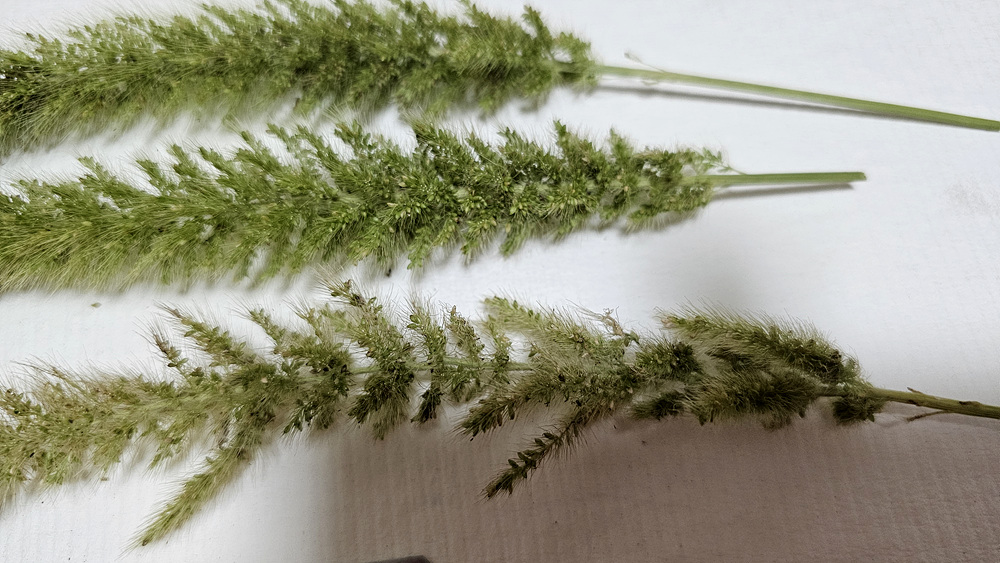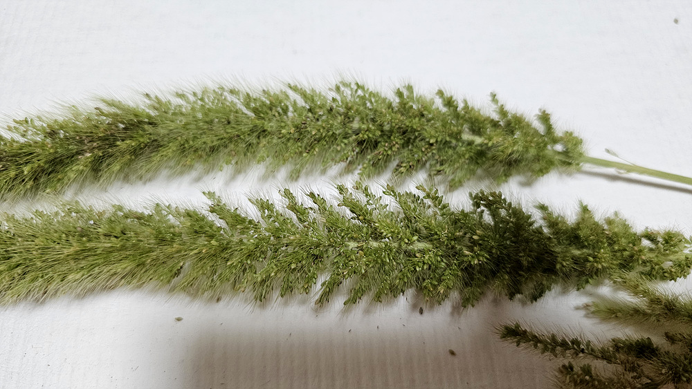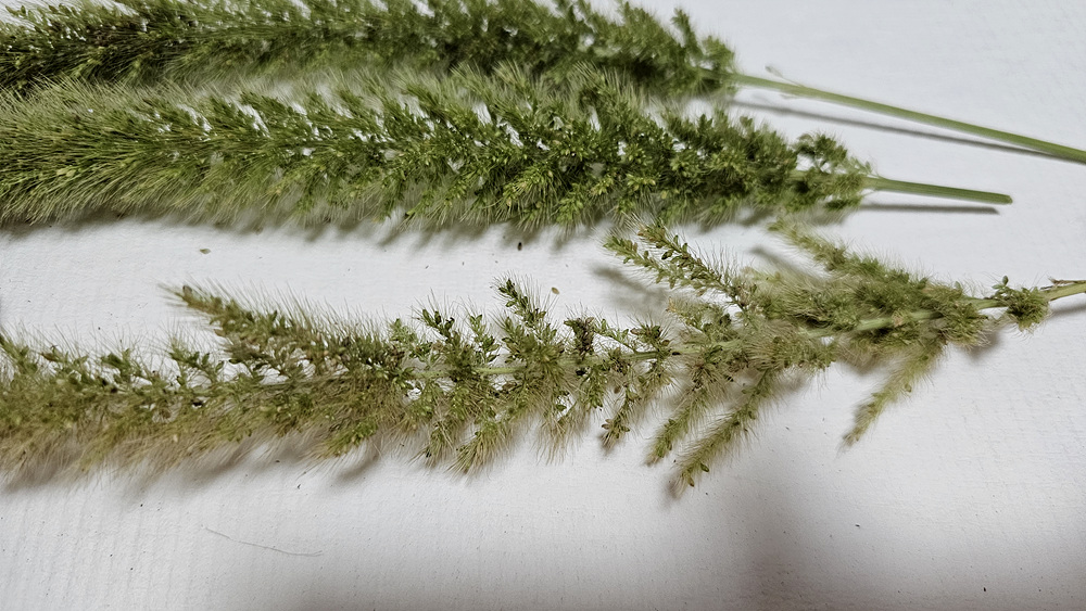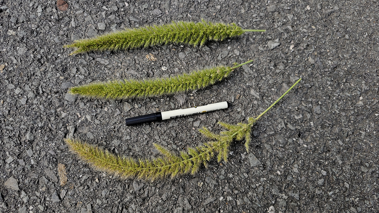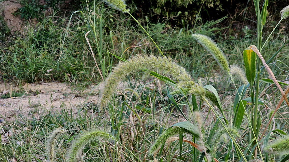 가을강아지풀 : 강아지풀보다 화서가 길어서 아래로 휘어지며, 소수가 비교적 성글게 달리고 2포영이 2소화보다 짧다.