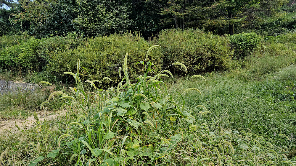 조와 강아지풀의 교잡종이라 같은속 종에서 전초가 무척 큰 녀석이다.