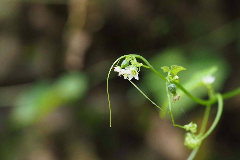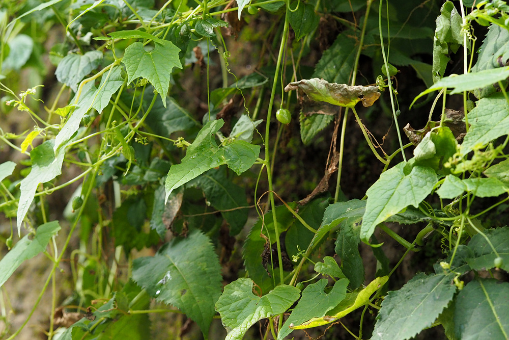 산지 숲 가장자리에 자라는 덩굴성 한해살이풀이다.
