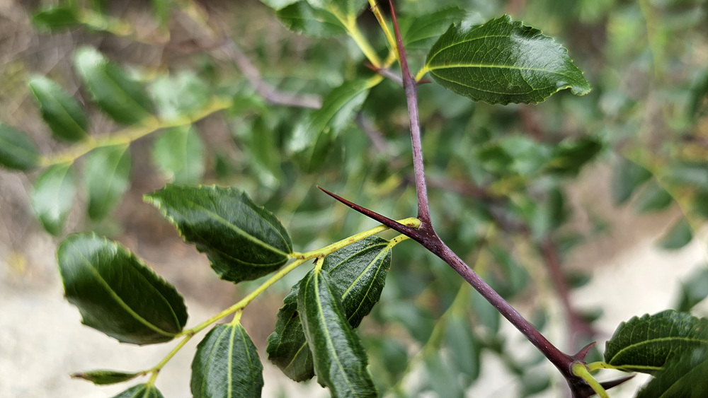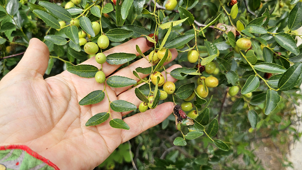 대추나무에 비하여 열매가 길이 1.5-2.5cm로 작고 잔가지에 1cm 정도 길이의 가시가 발달해 있다.