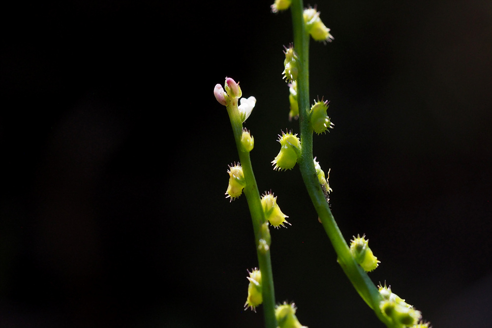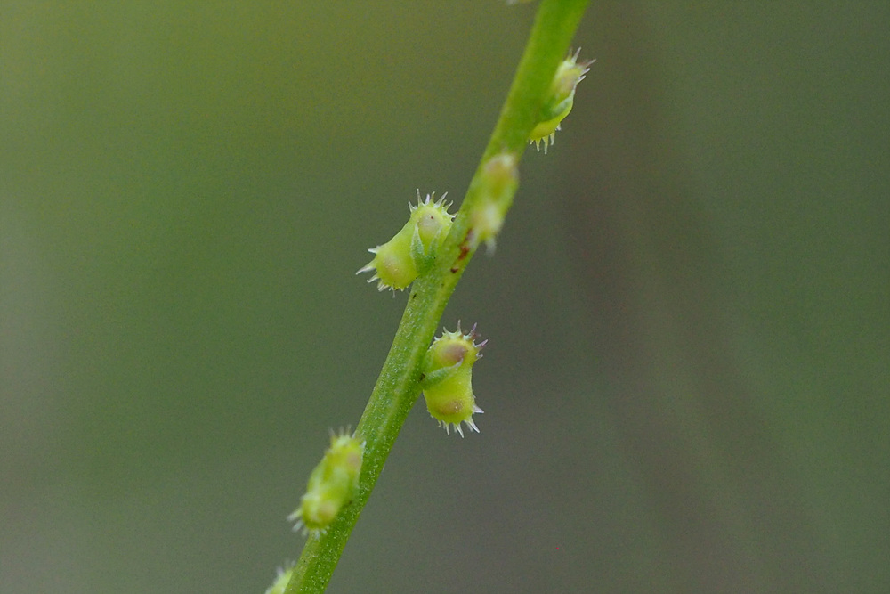 열매는 삭과로 납작한 콩팥모양이고 털이 없으며 지름 2mm정도로서 가장자리에 가시같은 털이 있다