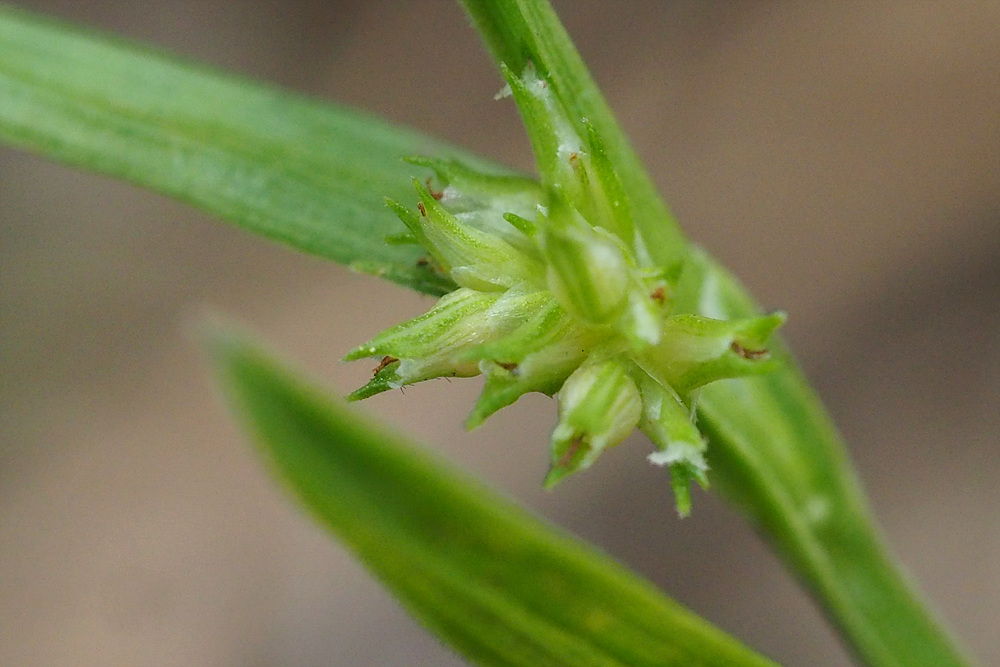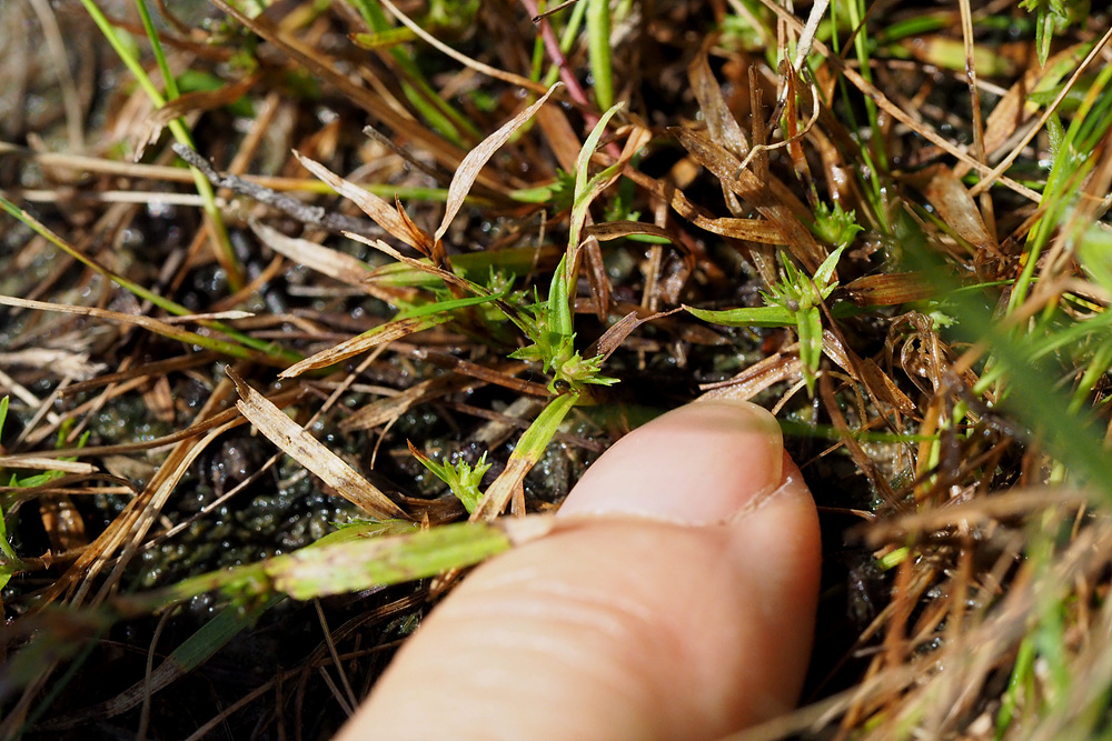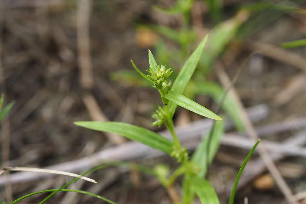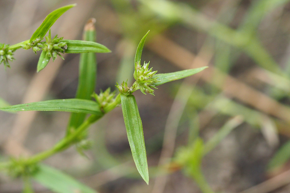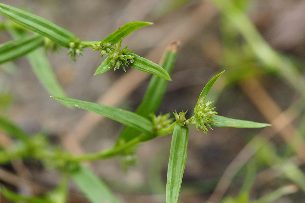 | 일년생. 근경이 없이 모여나고, 뿌리는 실 모양이며, 적자색이다. 줄기 높이 3-15cm로 식물체가 작다. 무모이고, 직립하거나 비스듬히 자라며, 단면은 삼각형이다. 잎 엽초에 좁은 날개가 있고, 날개는 위쪽일수록 더 넓으며, 엽설은 없다. 엽신은 선형이고, 길이는 1-4 cm, 너비는 1.5-3mm이며, 끝은 예두 혹은 서서히 좁아진다. 포엽과 소포엽 잎모양 또는 인편모양이고, 길이 3-10mm이다. 화서 두상 또는 취산화서로 짧은 자루가 있고, 몇 개 또는 많은 소수가 엽액에 모여 달린다. 소수 자성화의 기부에 작은 웅성화가 붙는다. 웅인편 좁은 난형이고, 둔두이다. 자인편 장타원형이고, 길이 1.5-2mm, 끝은 예두이거나 3열되며, 중앙열편은 더 크고 길다. 수과 2개의 인편에 둘러싸여 있고, 공모양이며, 길이 0.8-1mm, 3개의 세로줄과 사각형의 그물무늬가 있다. 주두 3갈래로 갈라진다. |