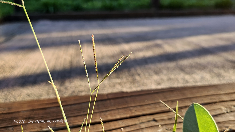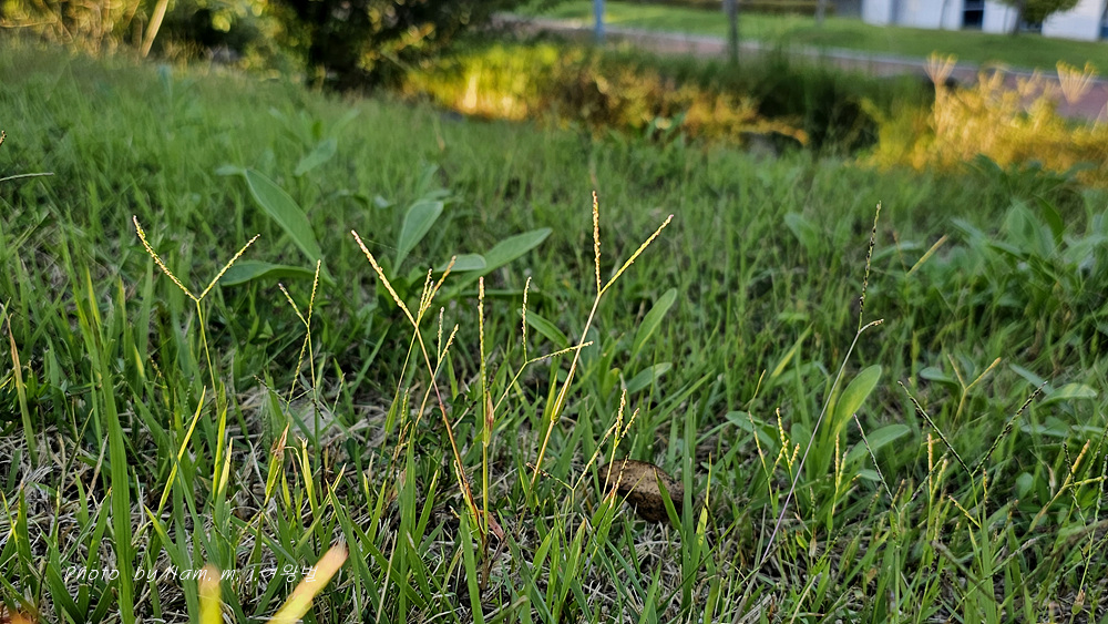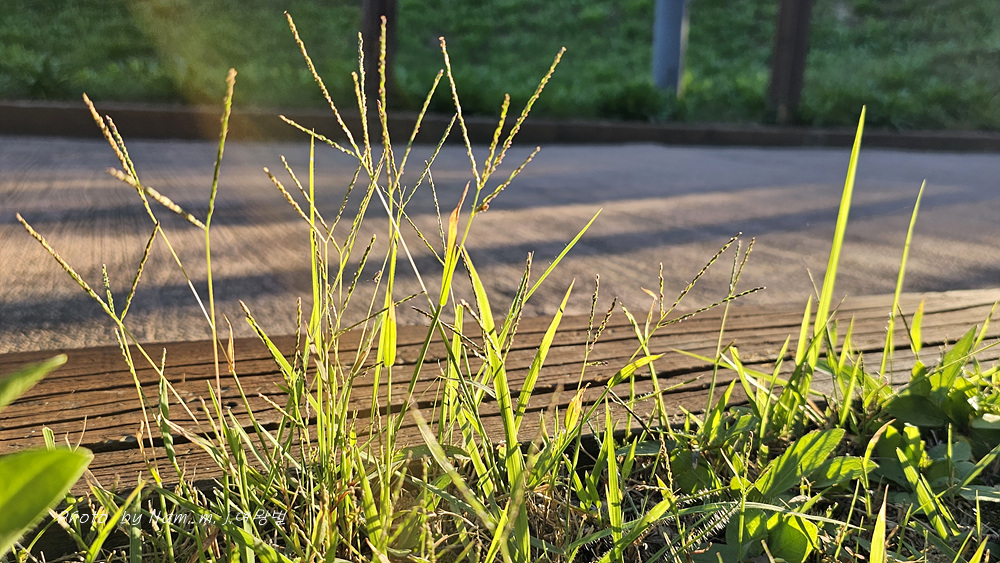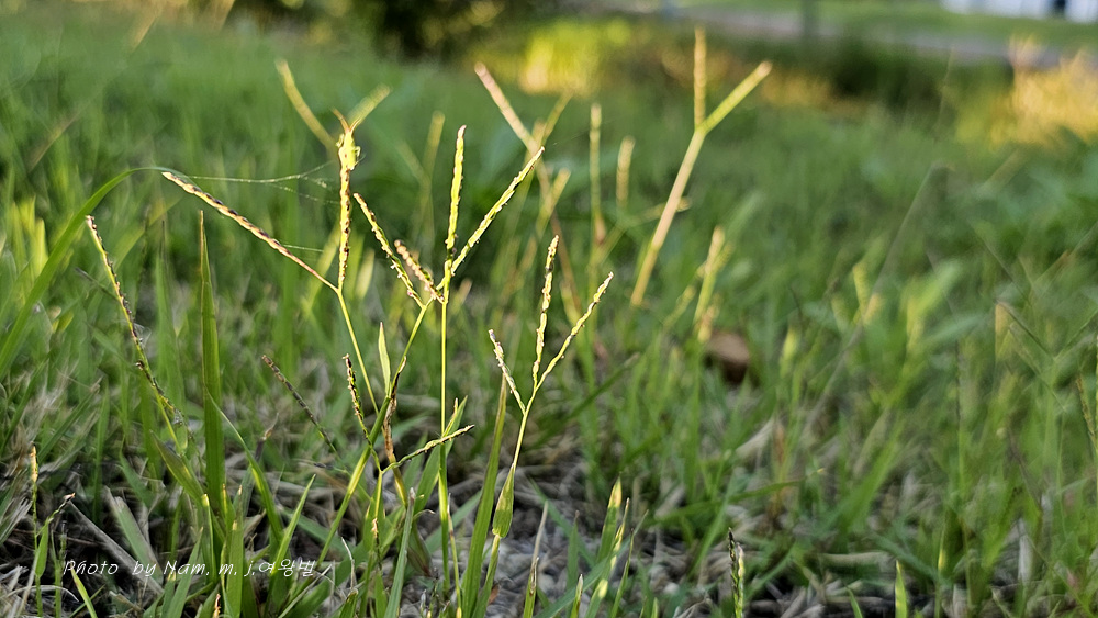 풀베기한 언덕배기, 넘어가는 햇살에 좀바랭이 총(꽃가지)이 멋지게 잘 드러난다.