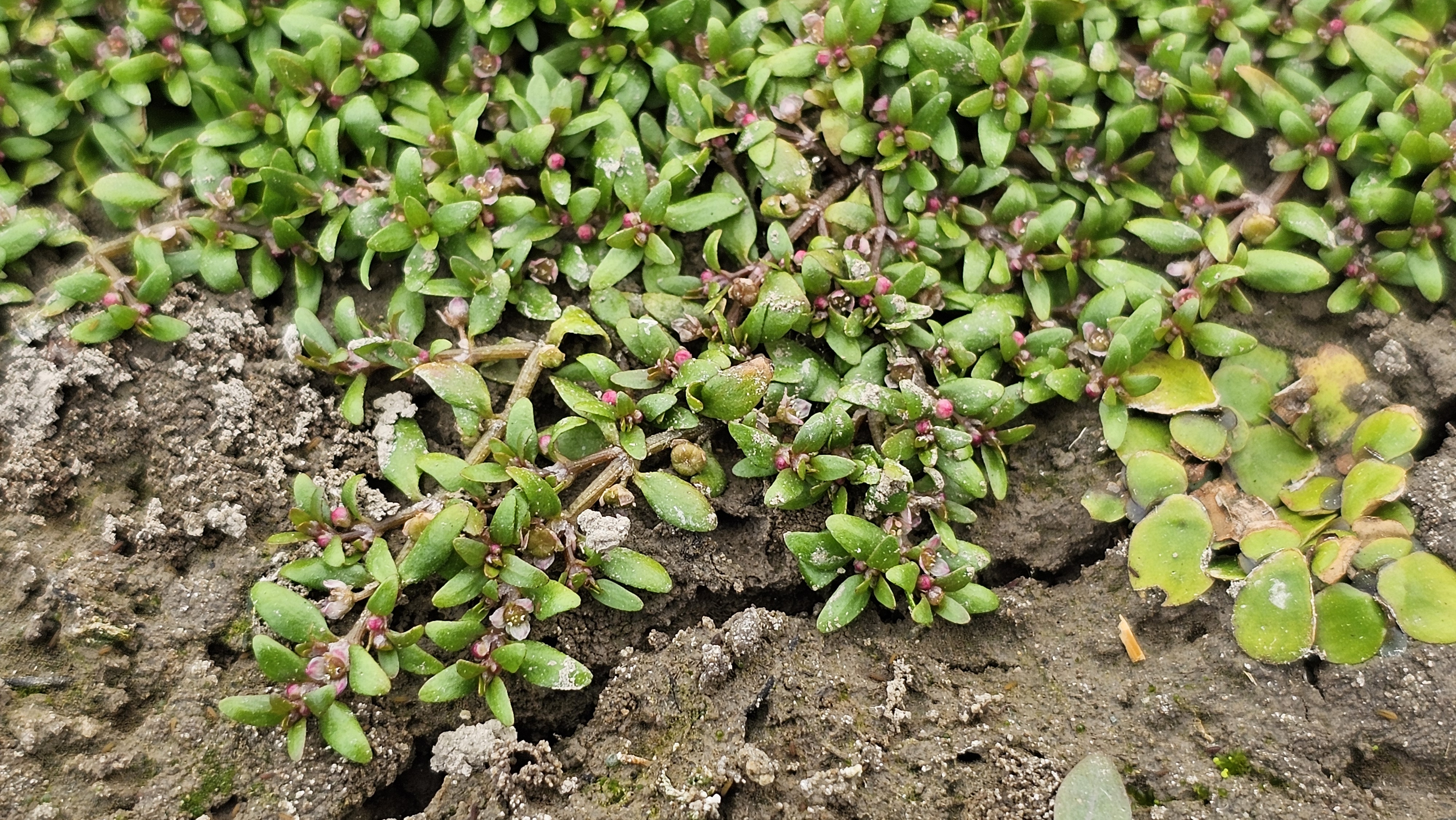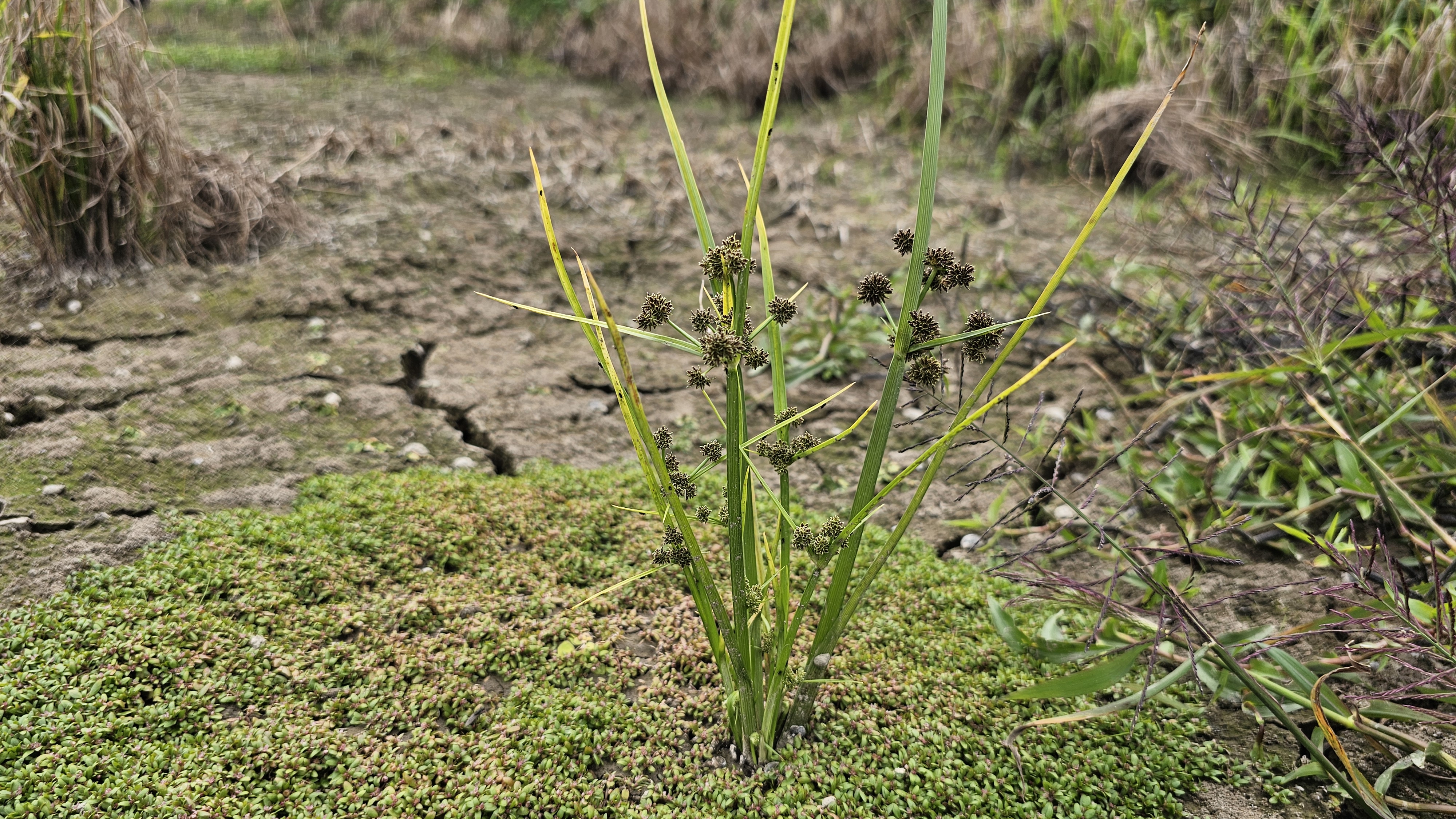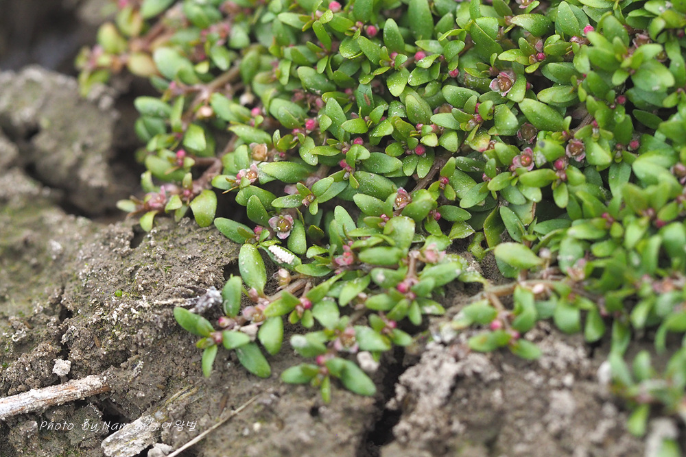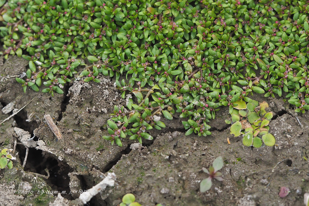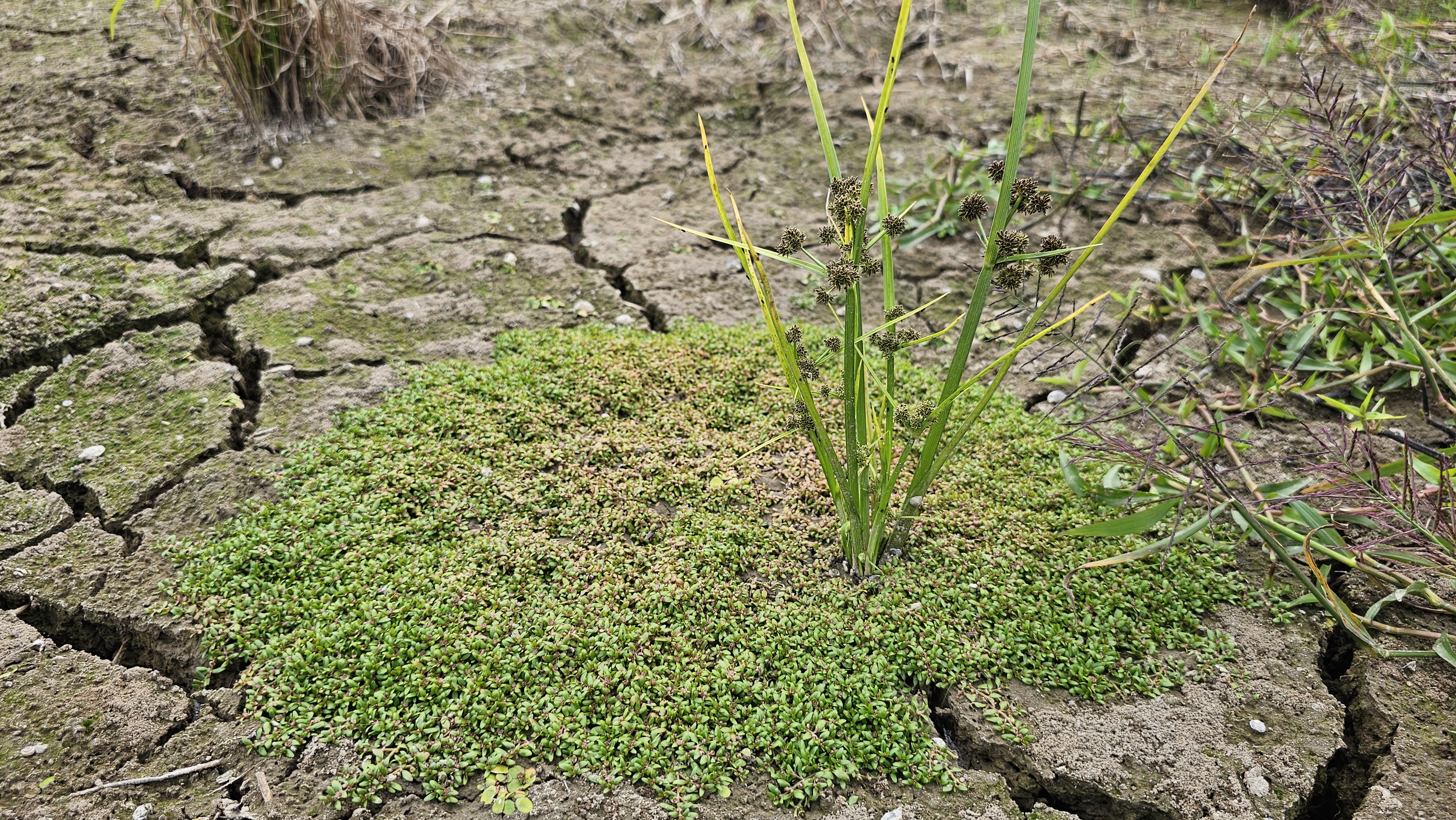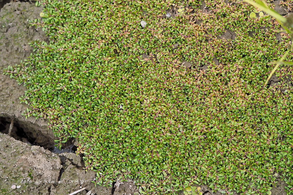 물빠진 묵논에 물벼룩이자리가 방석을 만들고 있다.